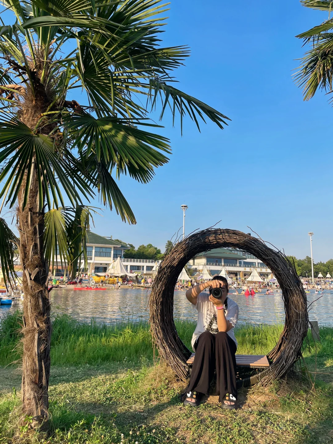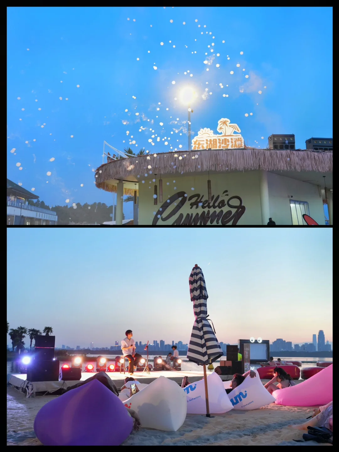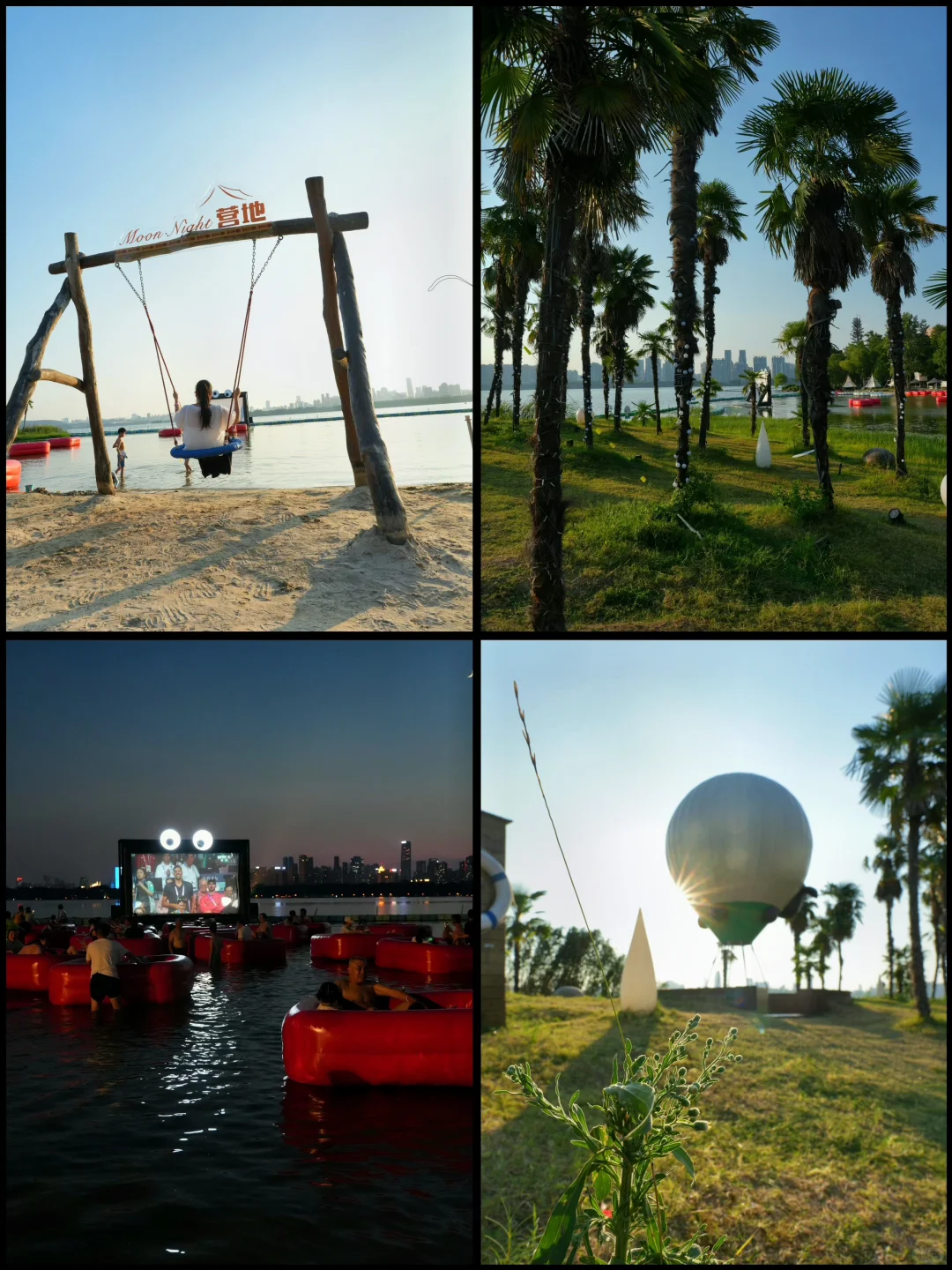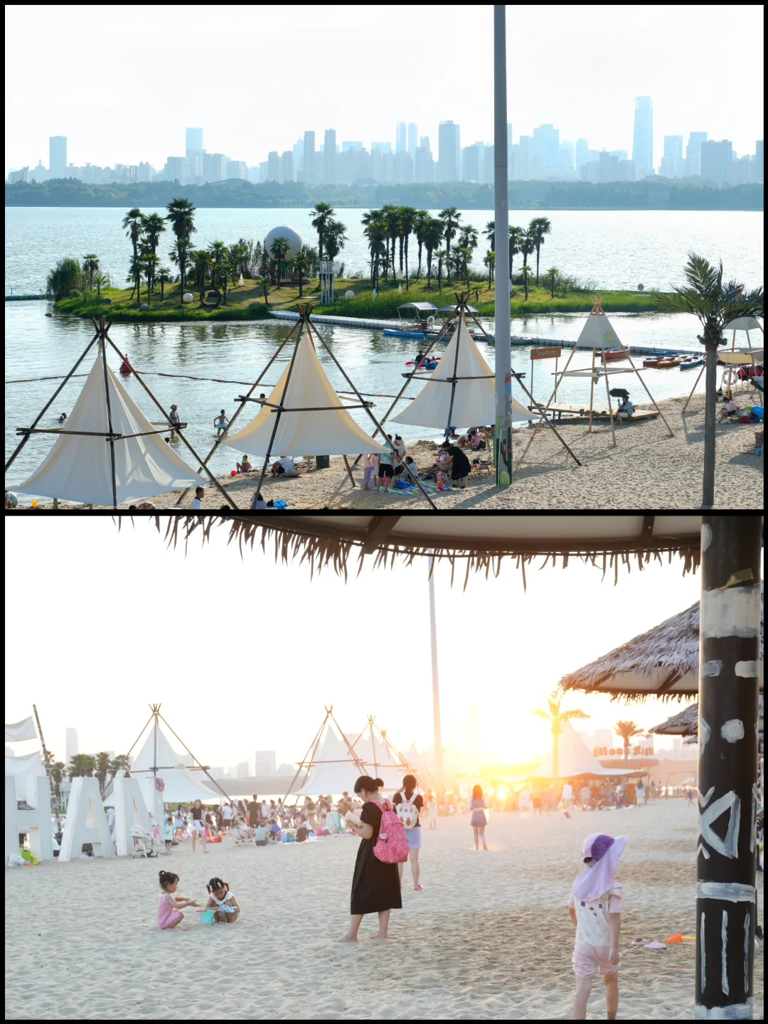 🍭六点左右的时候,太阳也快落山了,沙滩上有泼水节活动,还有各种沙滩演出,或是和家人朋友去湖心小岛拍拍照,不要太出片哦