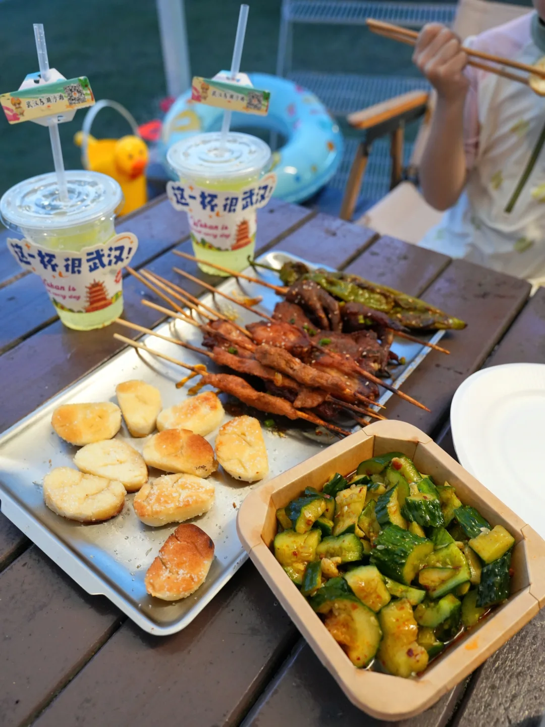 🌙太阳落山以后,到营地区晚餐点个烧烤,旁边有歌手驻场,边吃边听歌,好不舒服