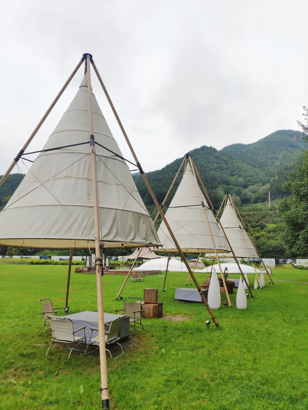 [得意R]我们选择的是青普银河营地,如果不愿意住帐篷的话也有酒店可供选择,大片的露营区,每个帐篷⛺都是一个房间,有独立的卫生间,还是很方便的,营地外围有安全护栏,进入需要刷卡,每个帐篷都有自己的锁🔓,安全很放心,我们去的时候刚好下了点小雨,晚上睡在帐篷里,听着虫鸣和雨滴,真的好治愈[偷笑R]