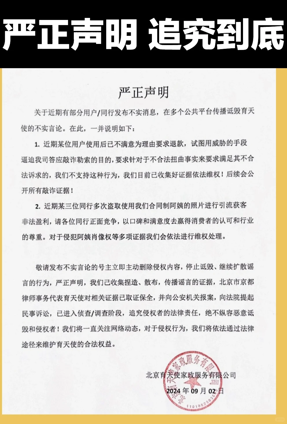 育天使严正声明‼️拿证据说话是我们的底线‼️