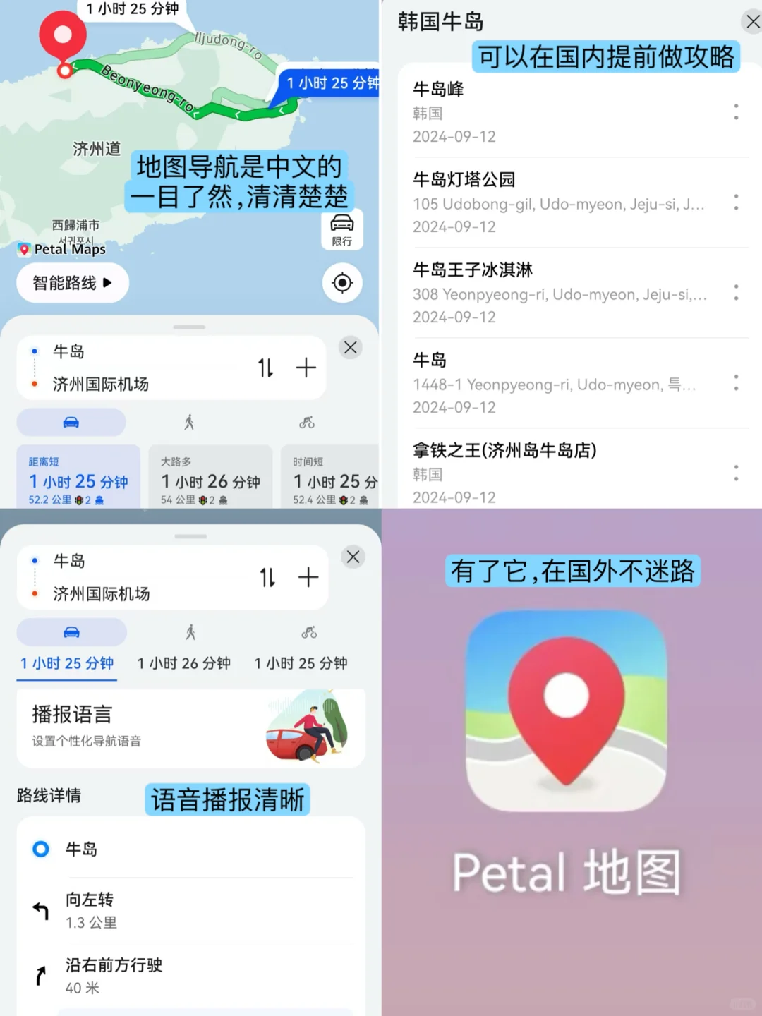 🗺️在国外看地图导航不方便?装一个Petal Maps就解决了。中文界面更易懂,而且导航精准不绕路。建议出行前在国内就下载好,可以用它提前规划路线。当地天气、酒店预订、打车租车、外卖、当地餐饮这些统统都有,强得离谱。