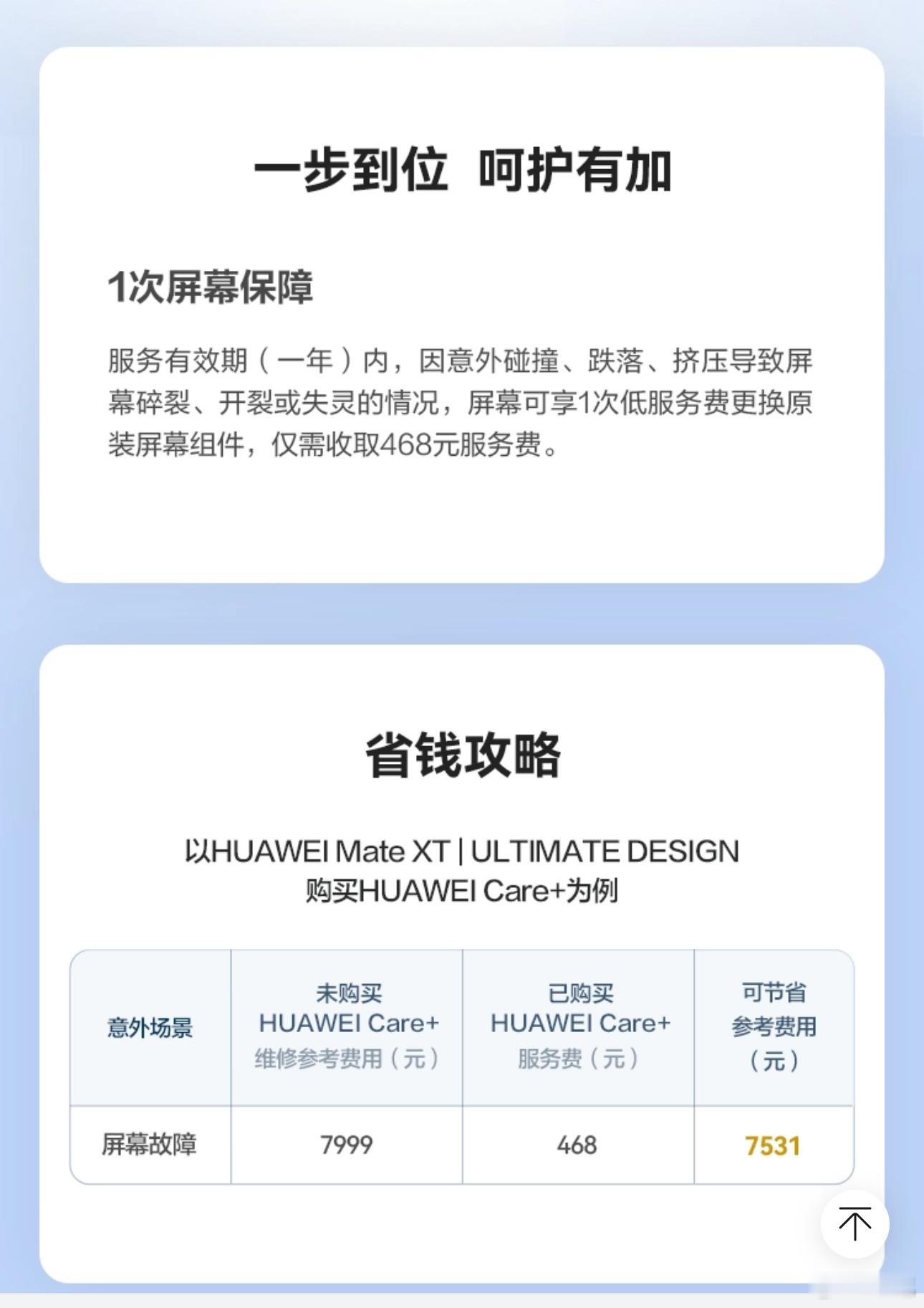 matext的care➕保险,一年就要3699,赶上一台车的保险了,看说明介绍只保屏幕,真是够贵的。mate60rs非凡大师的care➕只要1299,什么都保。
