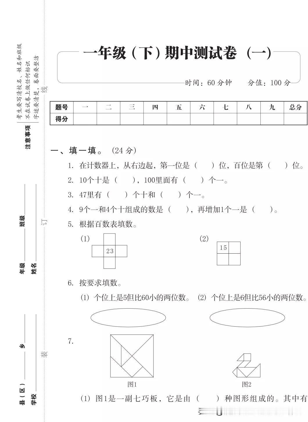 #一年级语文下册# #教育# #一年级数学下册# 期中考试试卷语文数学各一套,家
