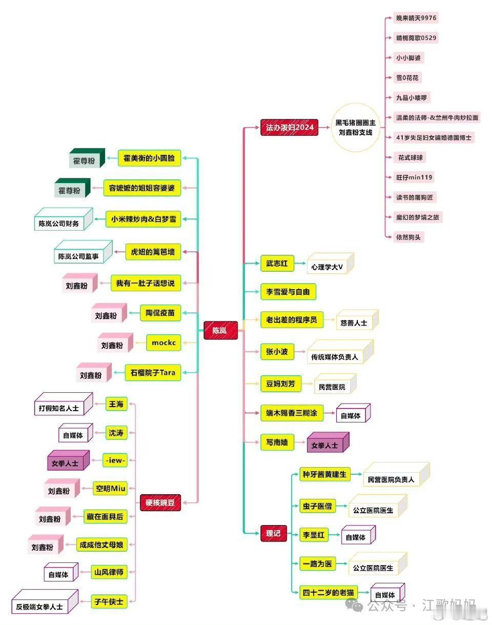 这两天,江秋莲女士的支持者制作了一张图,把这些天站出来反骗捐的部分大V知名人士列了出来,煽动粉丝进行网暴。江女士在自己的自媒体号矩阵中全文转发。