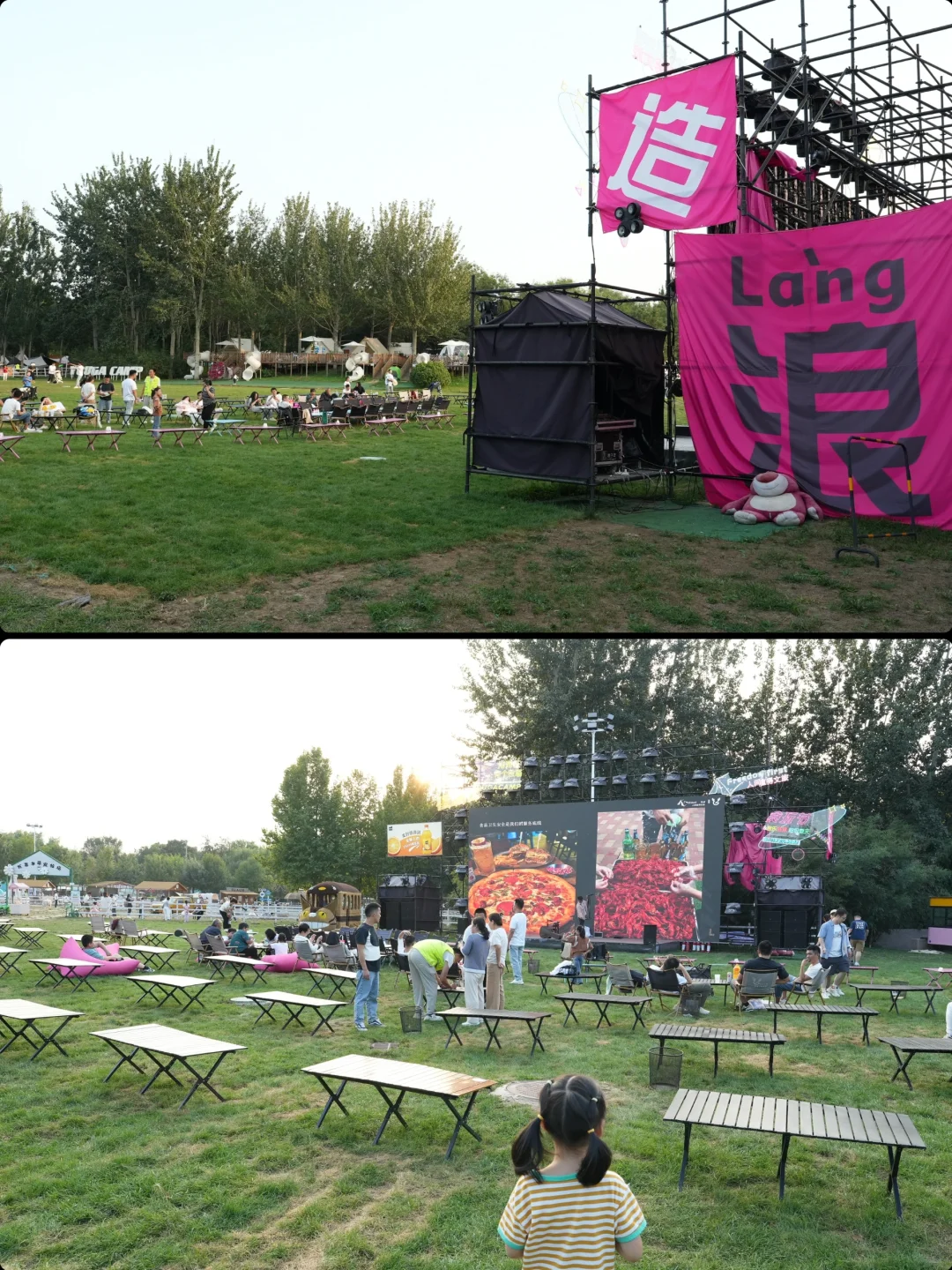 进门的草坪那里晚上会有乐队表演,园区会提供露营桌椅,去的早可以占一个,去的晚只能铺地垫(可以点烧烤、快餐、酒水),傍晚的时候和朋友家人吃着烧烤听着歌,也是不错的呢~