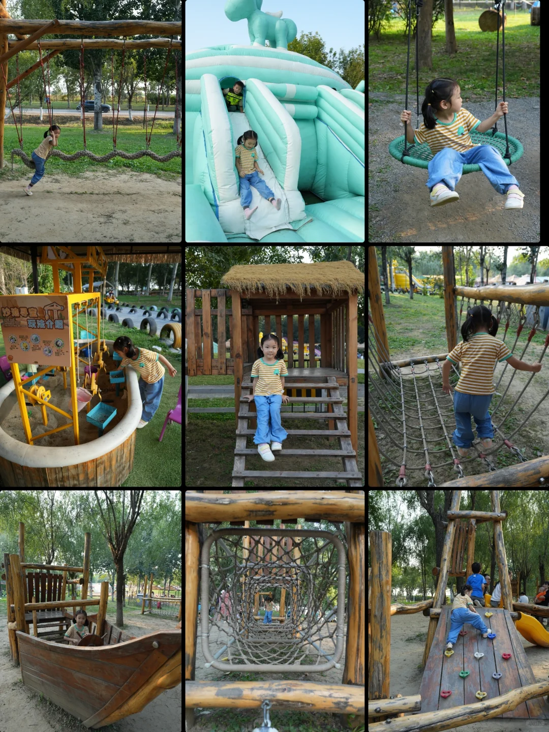 适合孩子玩的无动力乐园,有滑梯、秋千、海盗船、滑索、跷跷板等,还有一个🆓的充气城堡,小孩子玩一整天足够了