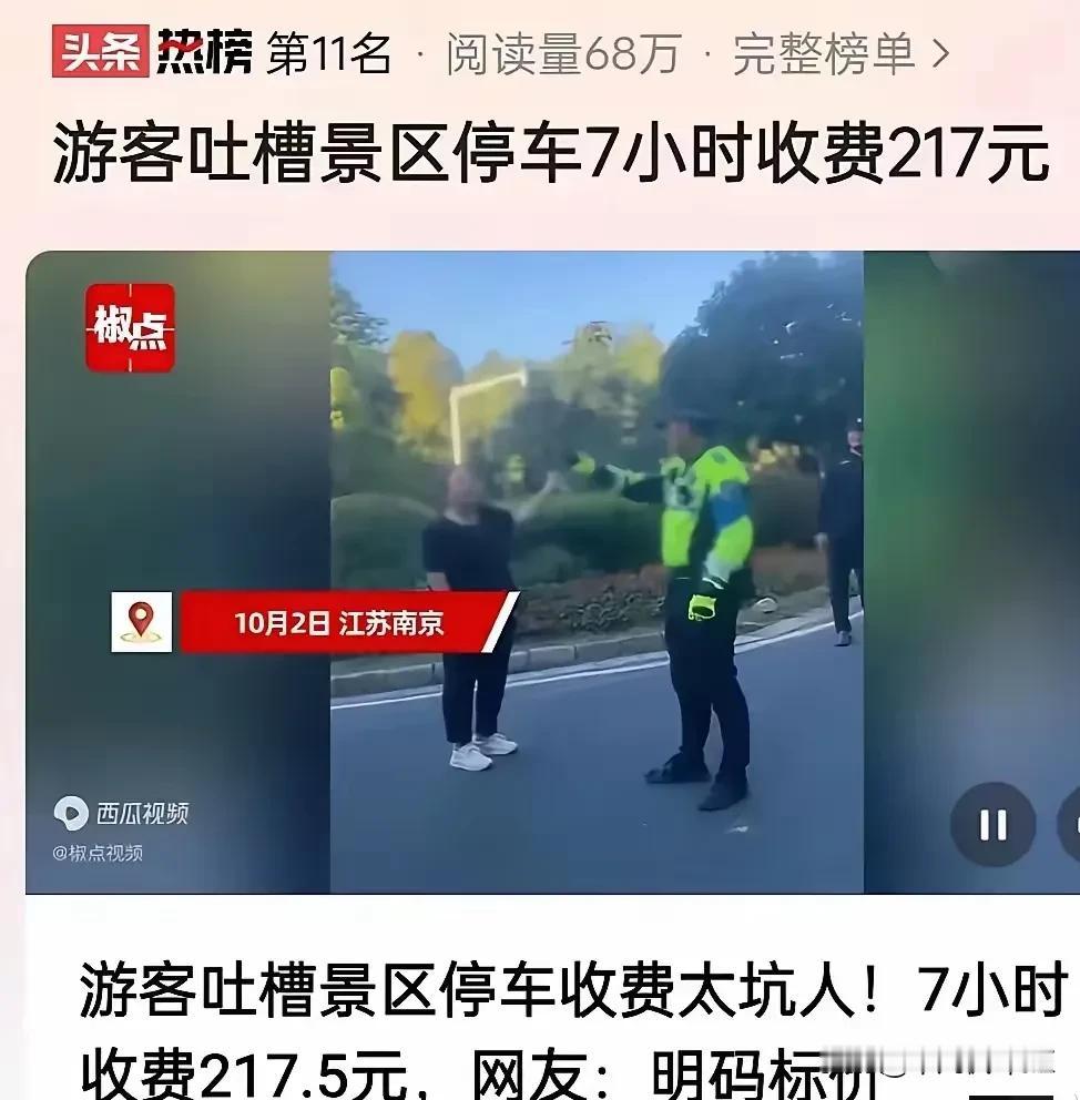 那日,游客在明孝陵附近的一个停车场停车7小时后,被收取了高达217.5元的费用。对于这样的价格,她大为惊讶,她感到困惑与不解,对明码标价的收费方式表示质疑。尽管她向警方报案寻求帮助,但得到的回应却是:“人家是明码标价的,我们也管不了。”