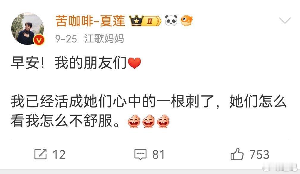 个人观察江女士近期情绪状态非常好,每周三次坚持直播2-3小时,精神矍铄,孔武有力,能吃大饼,其良好的精神状态获得微博十几位支持者的一致赞扬。