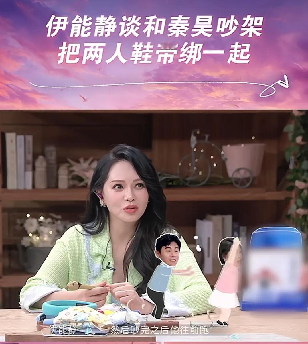 在节目中,伊能静称她跟秦昊在北京国贸附近吵架,是大吵的那种,吵完后秦昊就往前跑,结果伊能静立刻先蹲下把两人的鞋带绑在一起了,听到伊能静这样说周围的人都:“哇……”