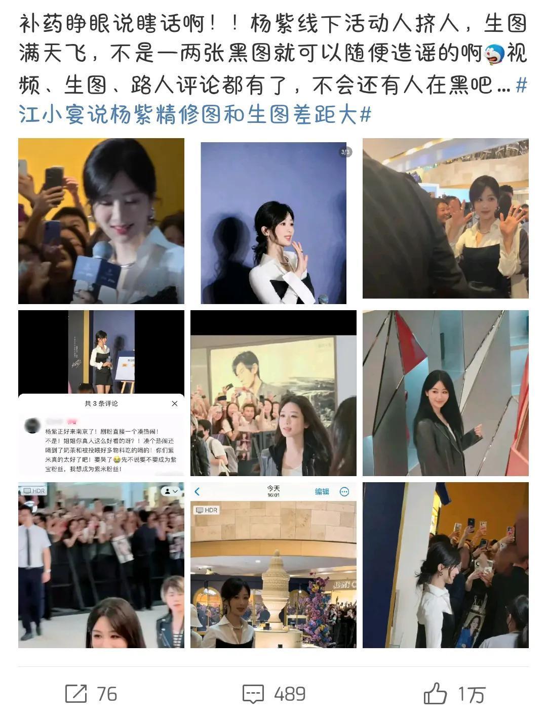 狗仔的这言论一出,不少网友纷纷炸锅,开始替杨紫说话,并且拿出了杨紫活动中的生图来证明,还称:补药睁眼说瞎话啊!!杨紫线下活动人挤人,生图满天飞,不是一两张黑图就可以随便造谣的。