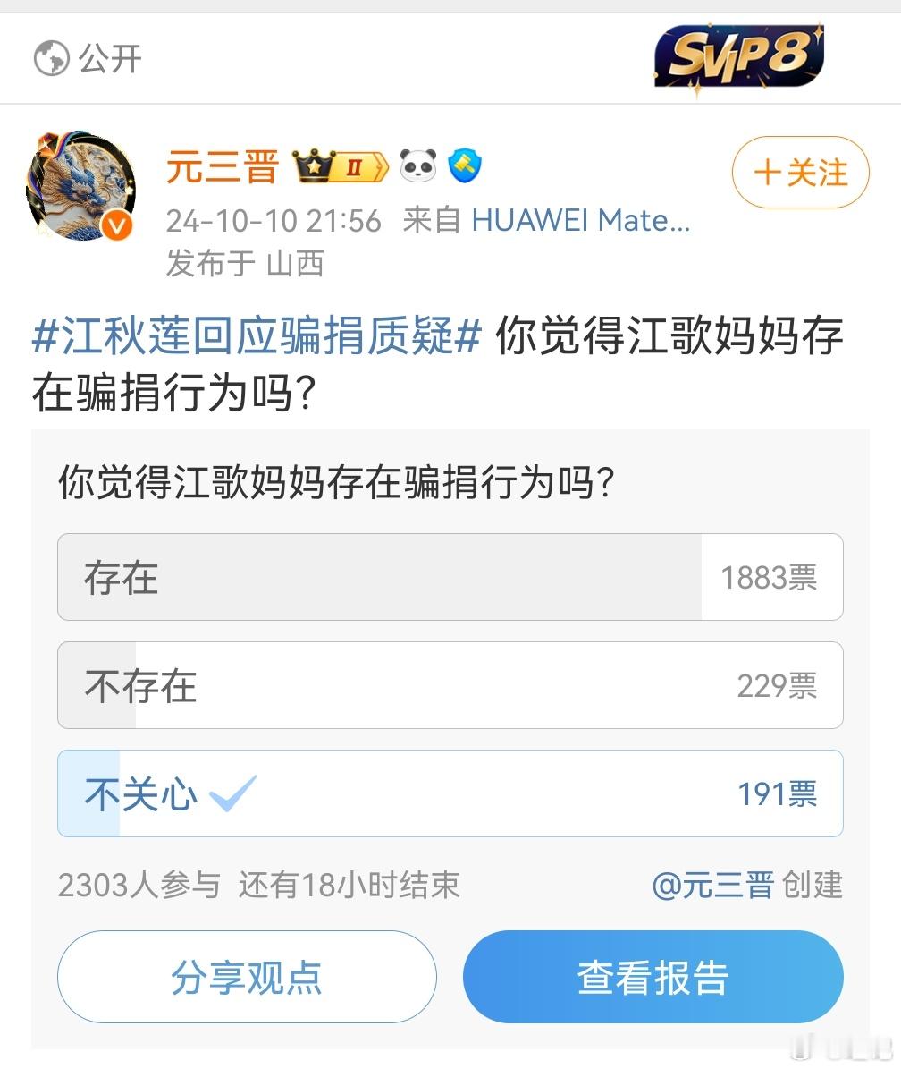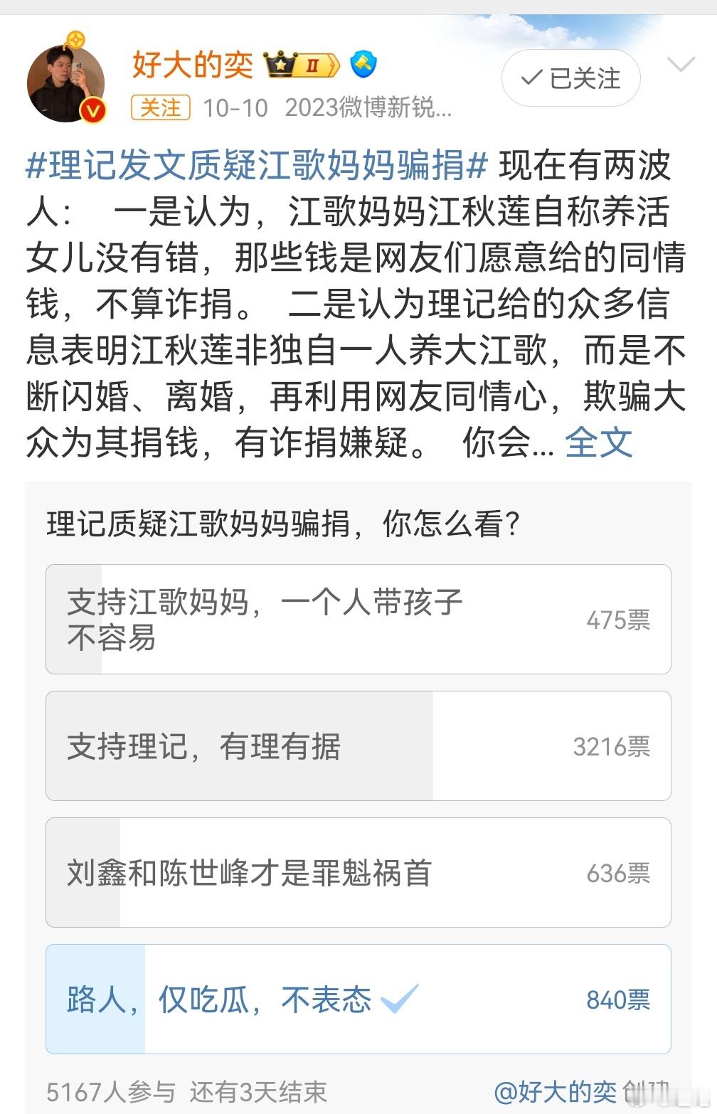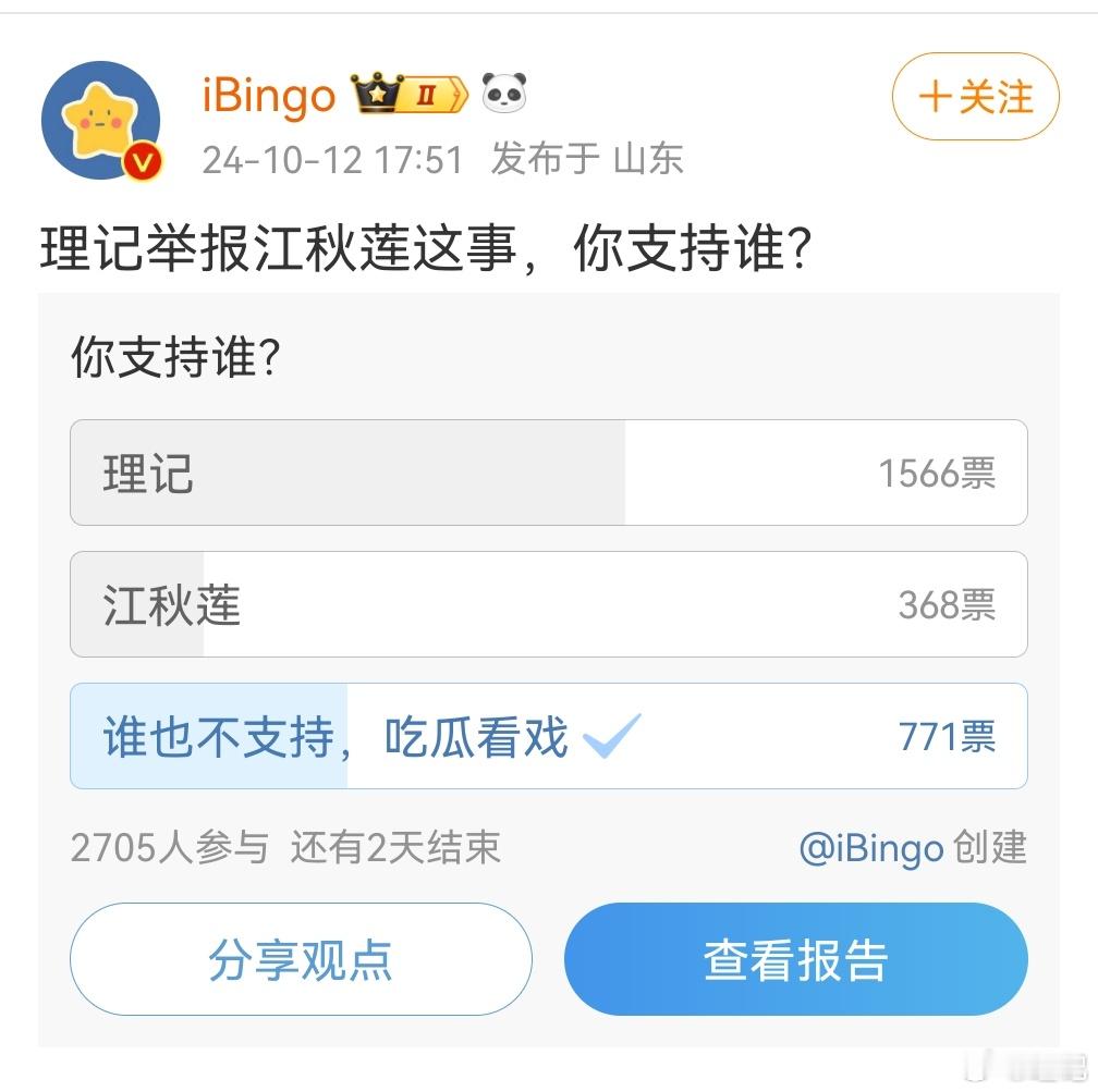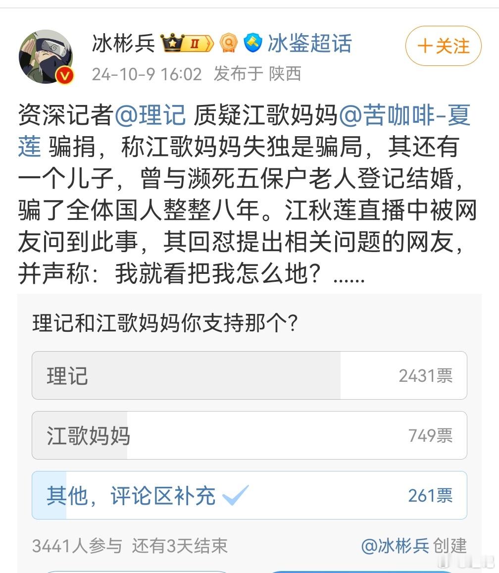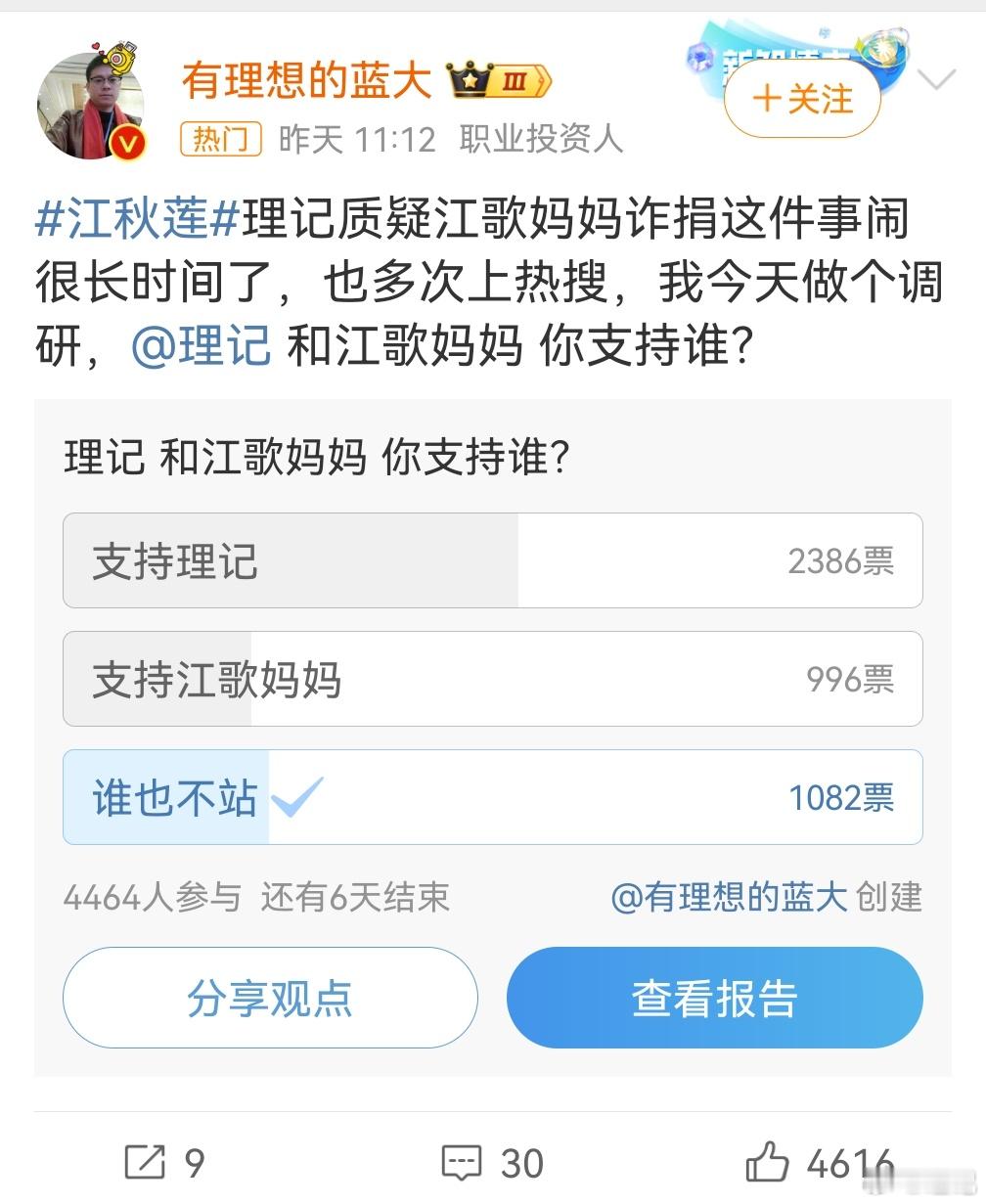 我看到很多大博主都在试探性的问,理记和江秋莲你们支持谁?从投票结果看理记占了绝对优势,这是这两个月来坚持摆事实讲道理的结果。