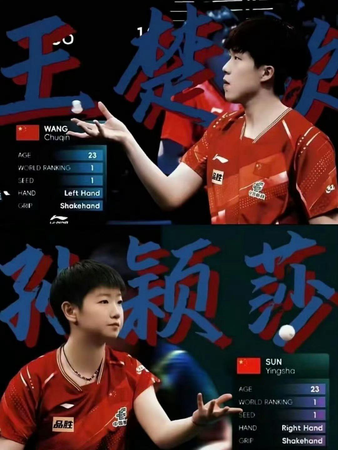 #王楚钦孙颖莎继续包揽WTT世界第1#