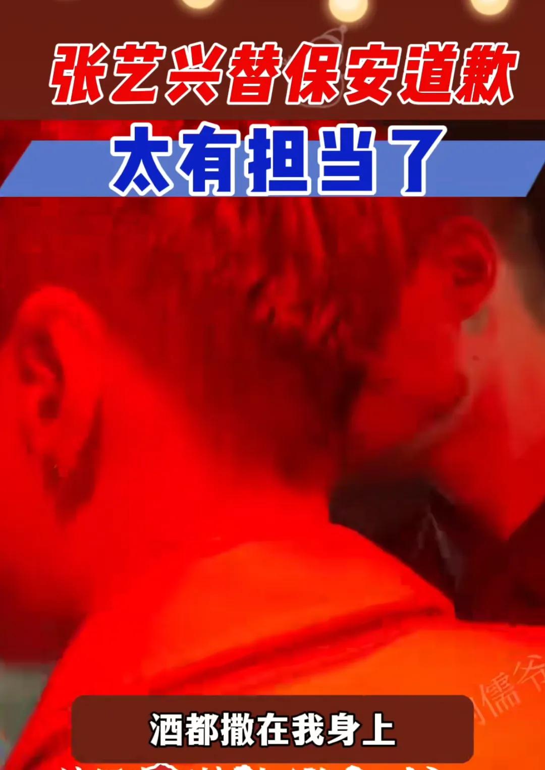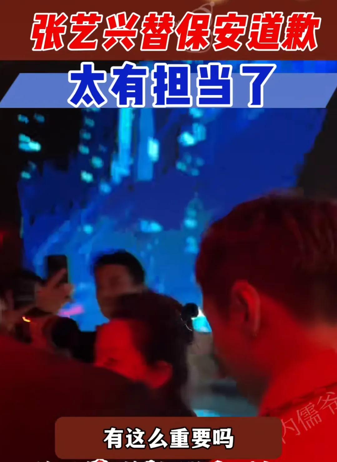突然的飞来横祸,让小姐姐开始生气抱怨:“酒都撒在我身上,有这么重要吗”?张艺兴听见后主动回头替保安道歉:“不好意思,不好意思”,随后他才离开。