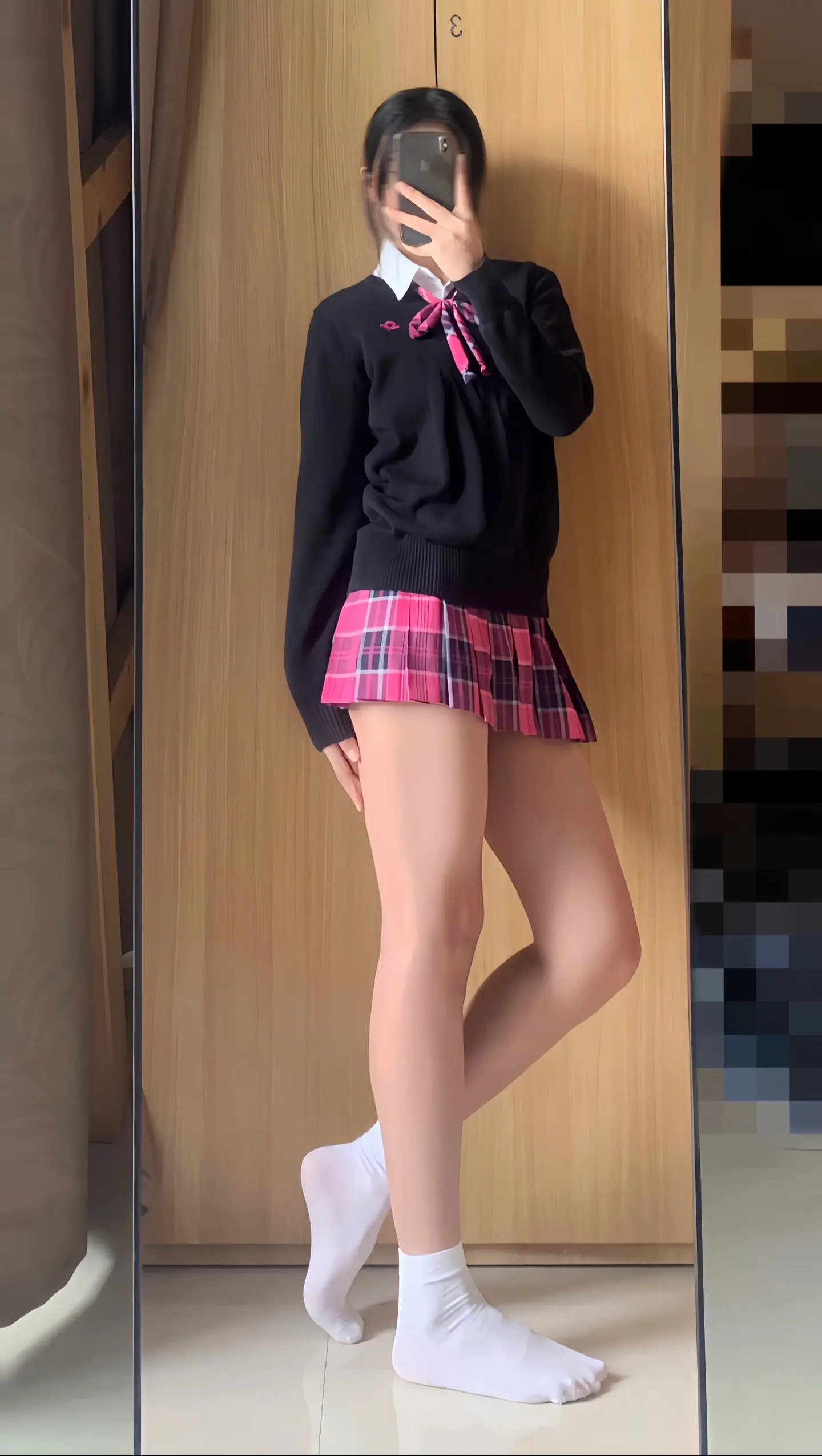 jk 对镜拍 腿长一米八 不愧是jk