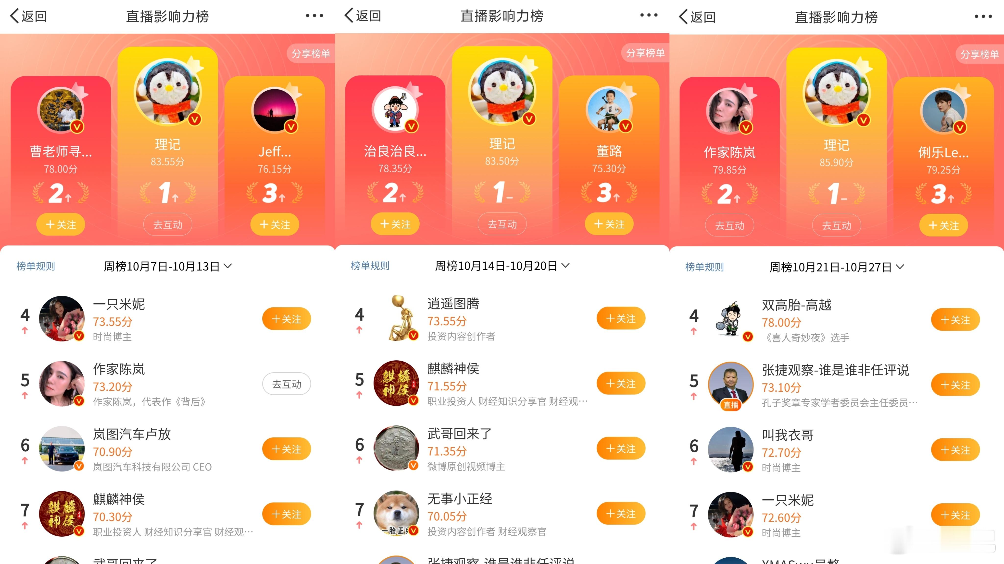 胡锡进老师终于回来了,时事榜就是秋后处决排序榜,我连续三周第一了,胡老师回来我赶紧让出位置。