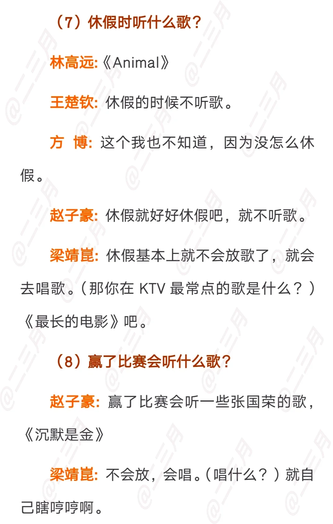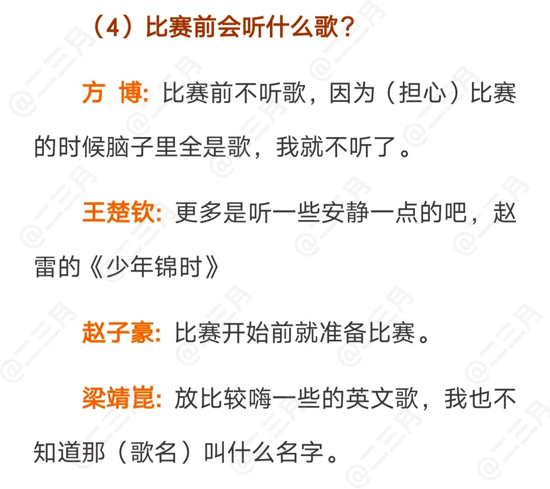 球员歌单问答采访