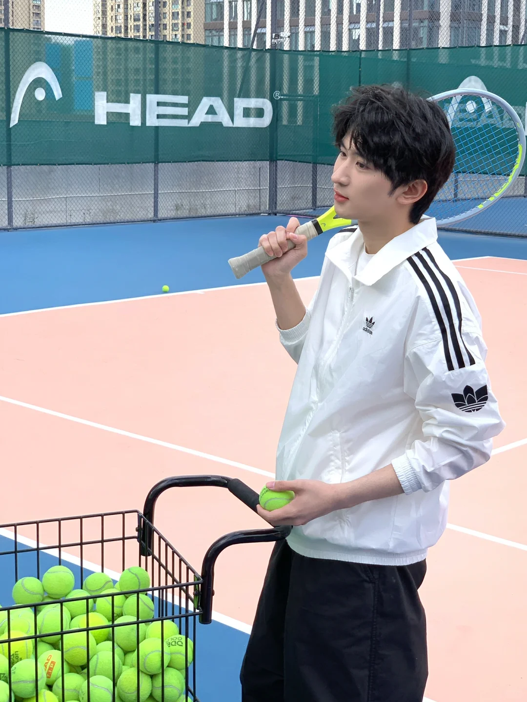 穿上了新买的冲锋衣打了一会儿球