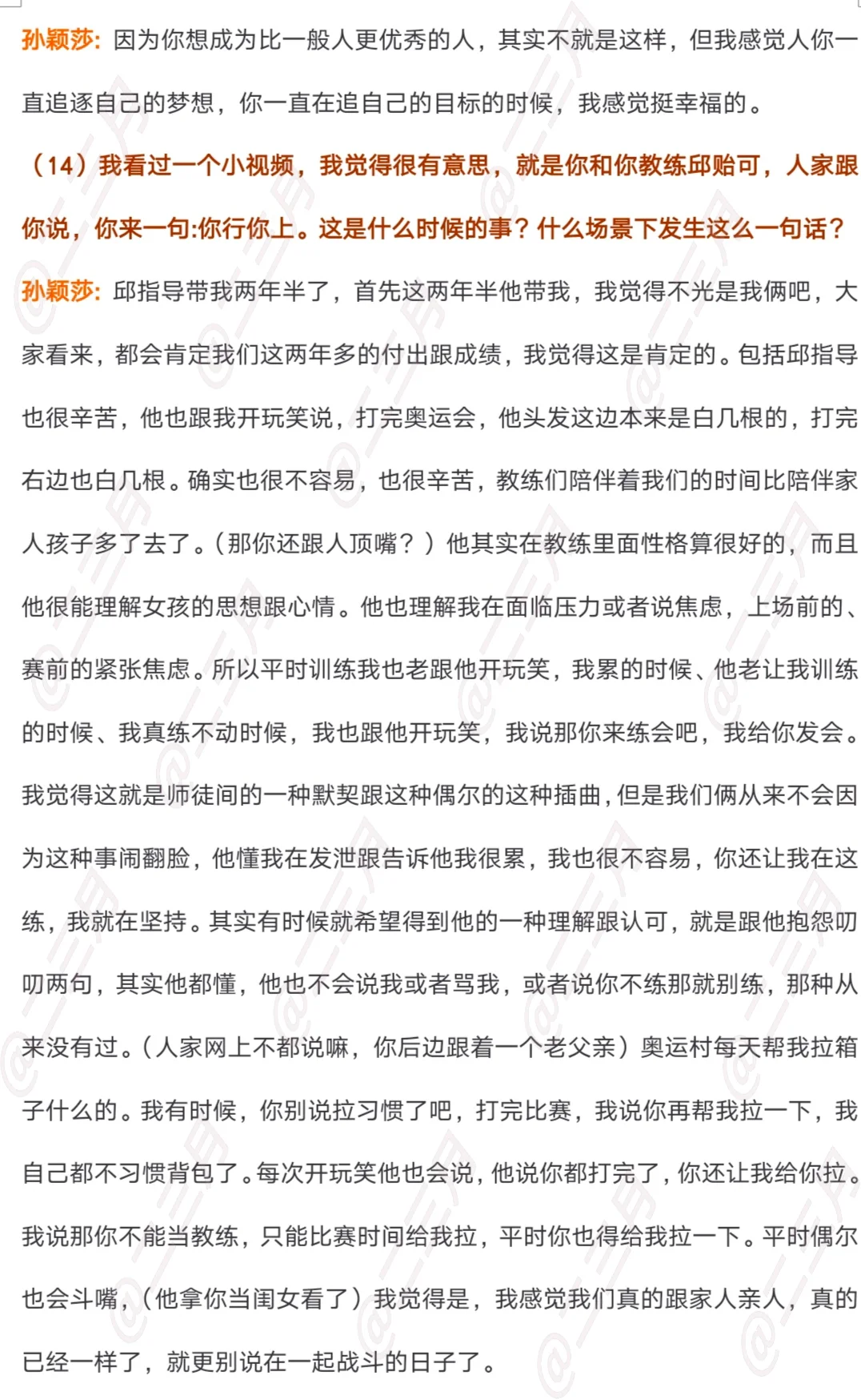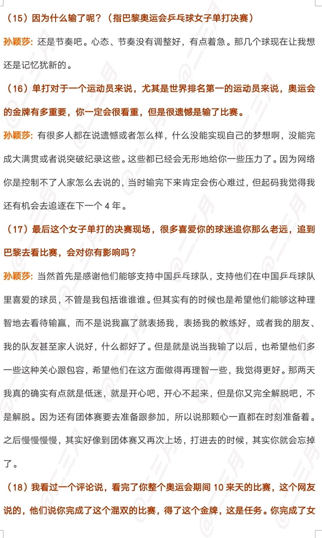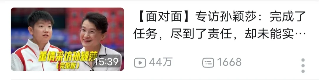 央视新闻《面对面》专访孙颖莎文字版