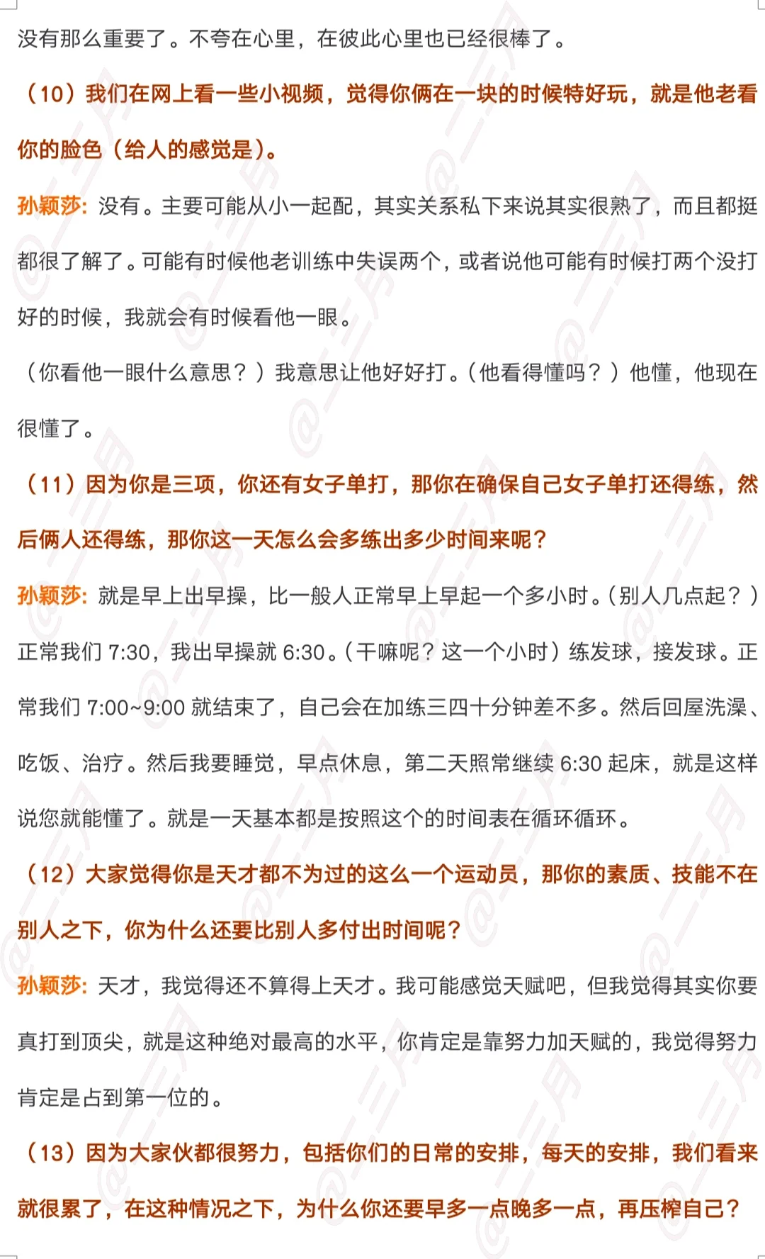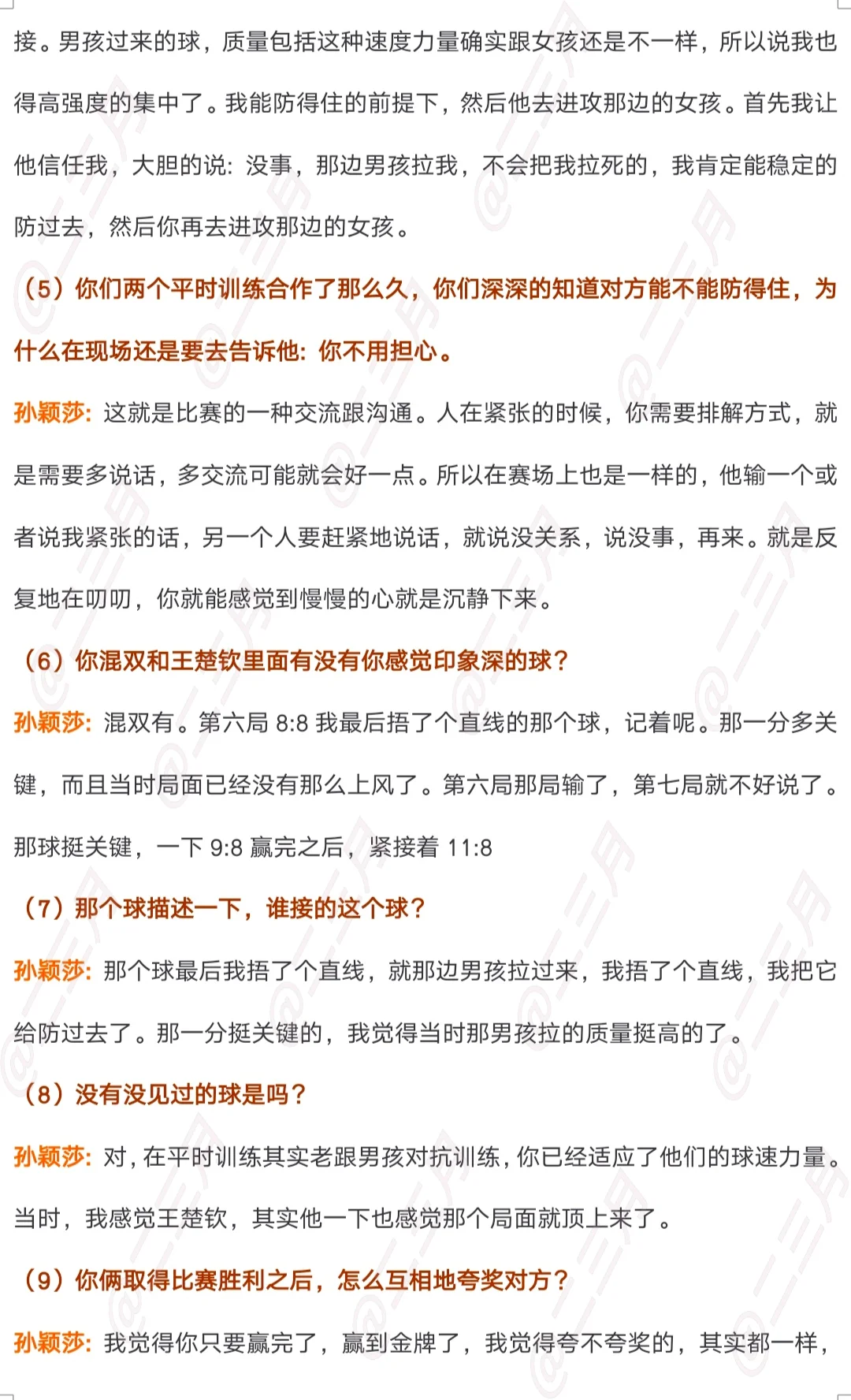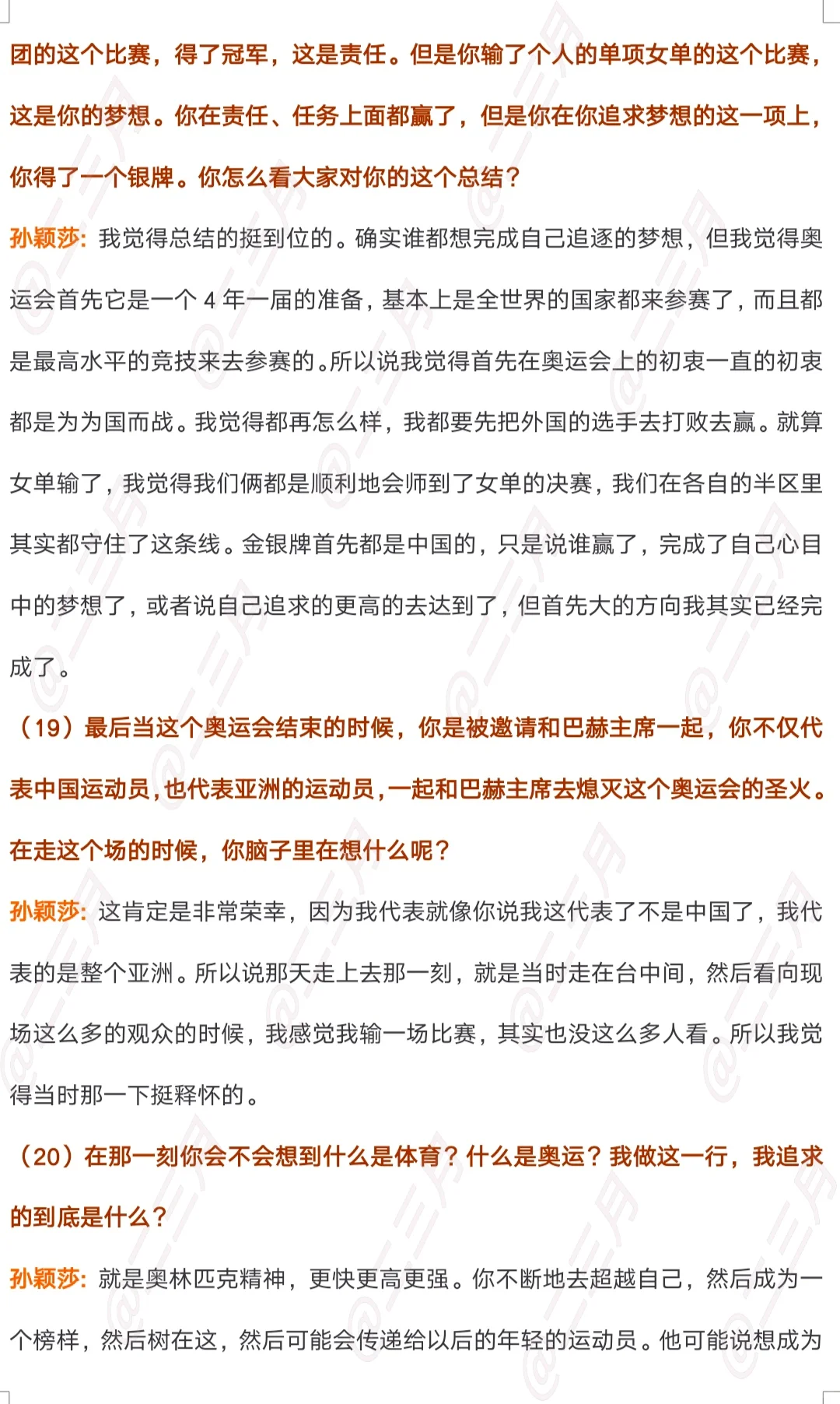 央视新闻《面对面》专访孙颖莎文字版
