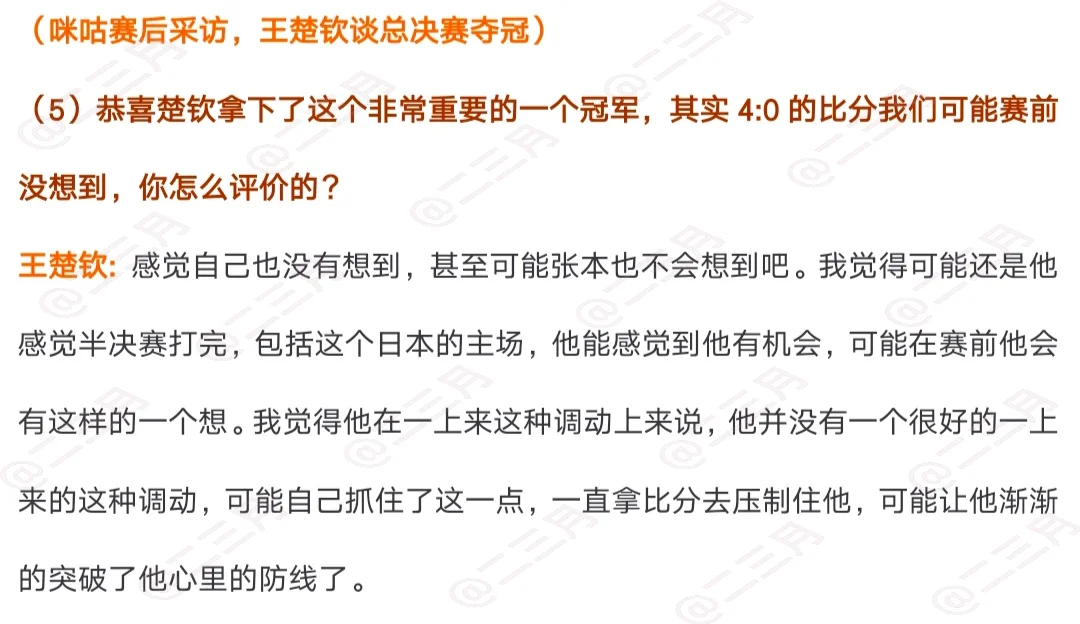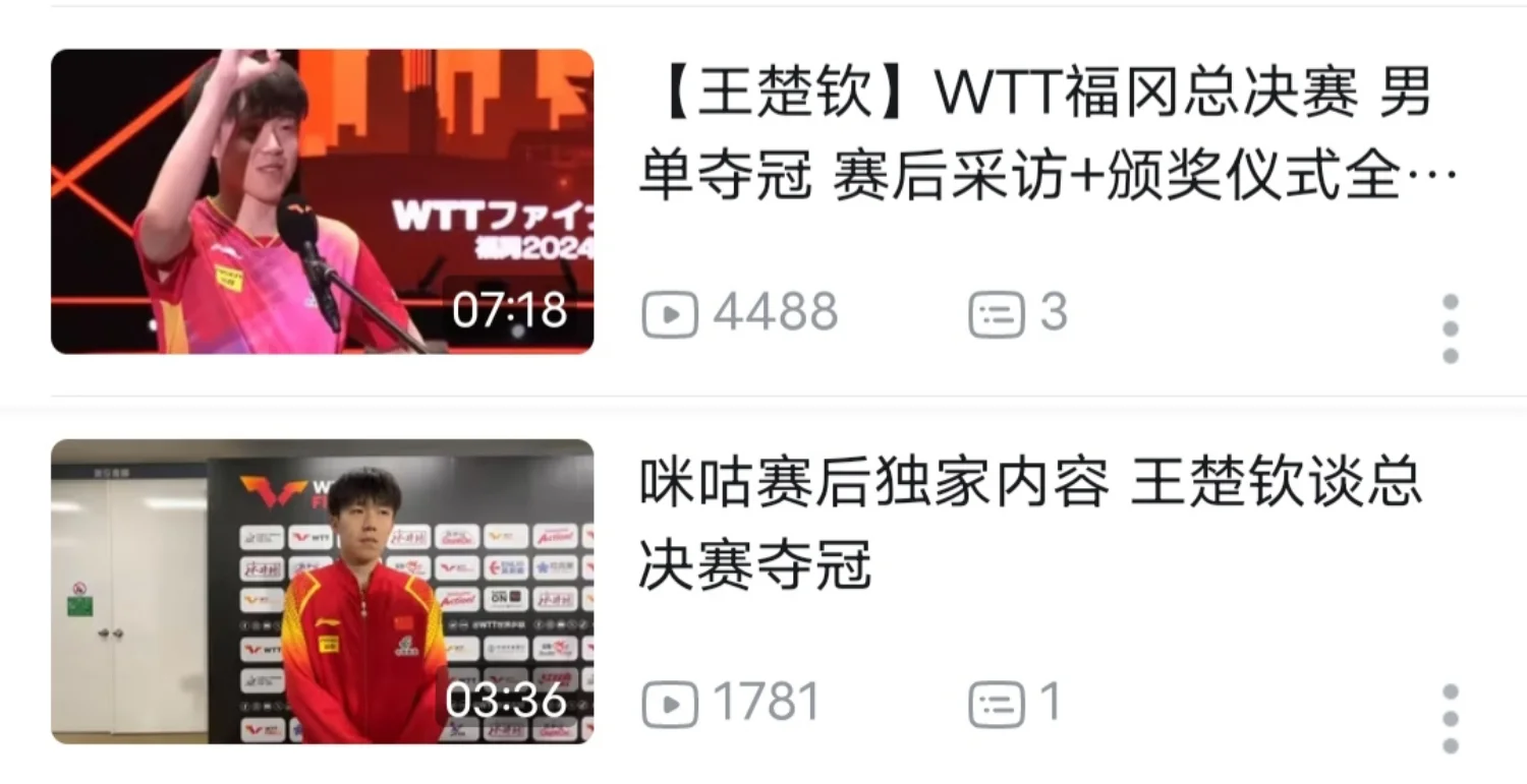 WTT福冈王楚钦男单夺冠采访以及夺冠后咪咕的采访,祝贺王楚钦获得男单冠军!