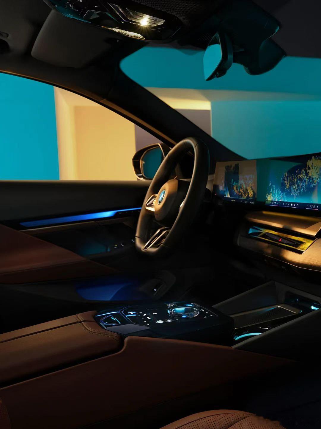 从车辆外观的光影设计,到内饰的氛围营造,BMW将驾乘体验艺术化。迎宾光毯缓缓铺展,像为车主开启通向专属领域的道路;星空顶的璀璨灯光宛如移动的艺术装置,带来沉浸式的视觉享受;多彩氛围灯将座舱化为流动的光影空间,与驾驶者的情绪完美共鸣。