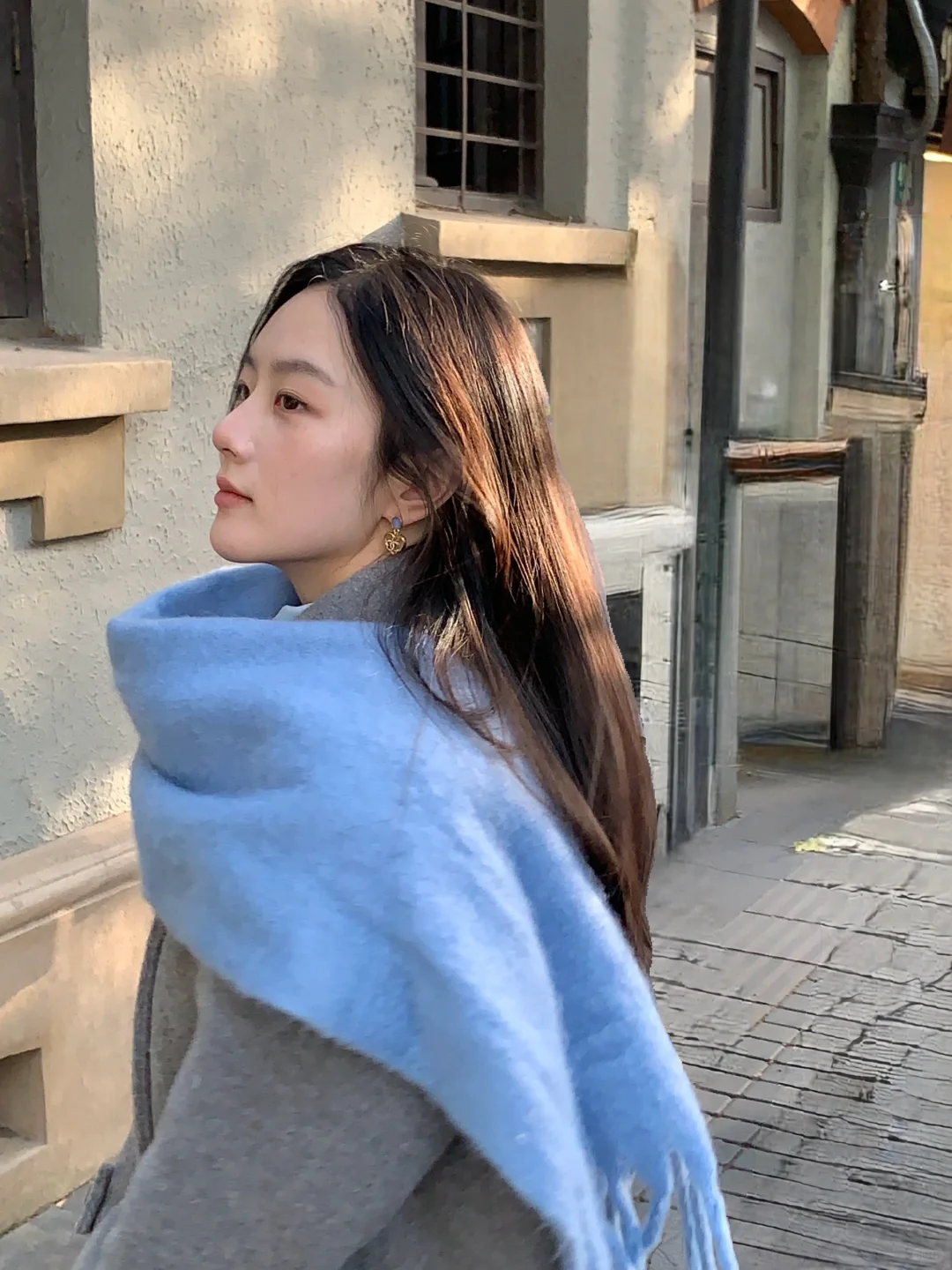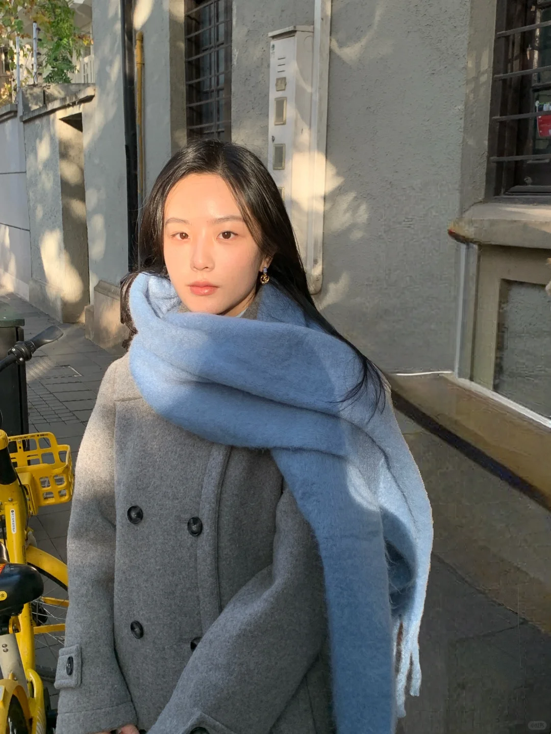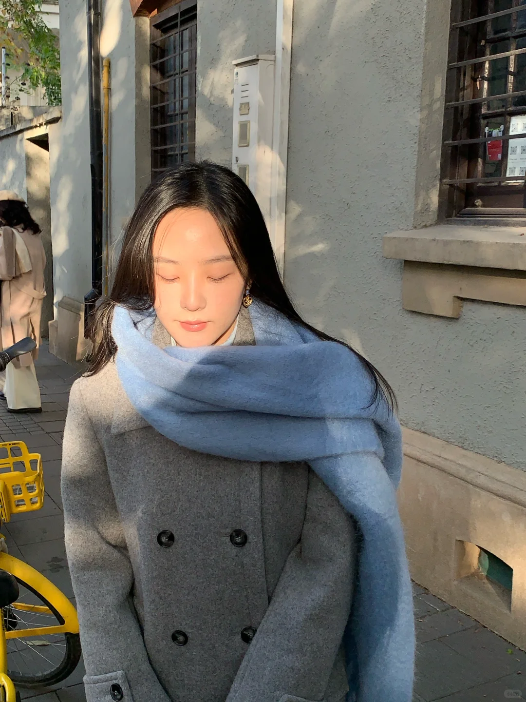 暖暖的冬天,灰色跟蓝色的搭配最亮眼啦,我想,我能理解为什么老师会推巴恩风穿搭了,老师,thank u[飞吻R]