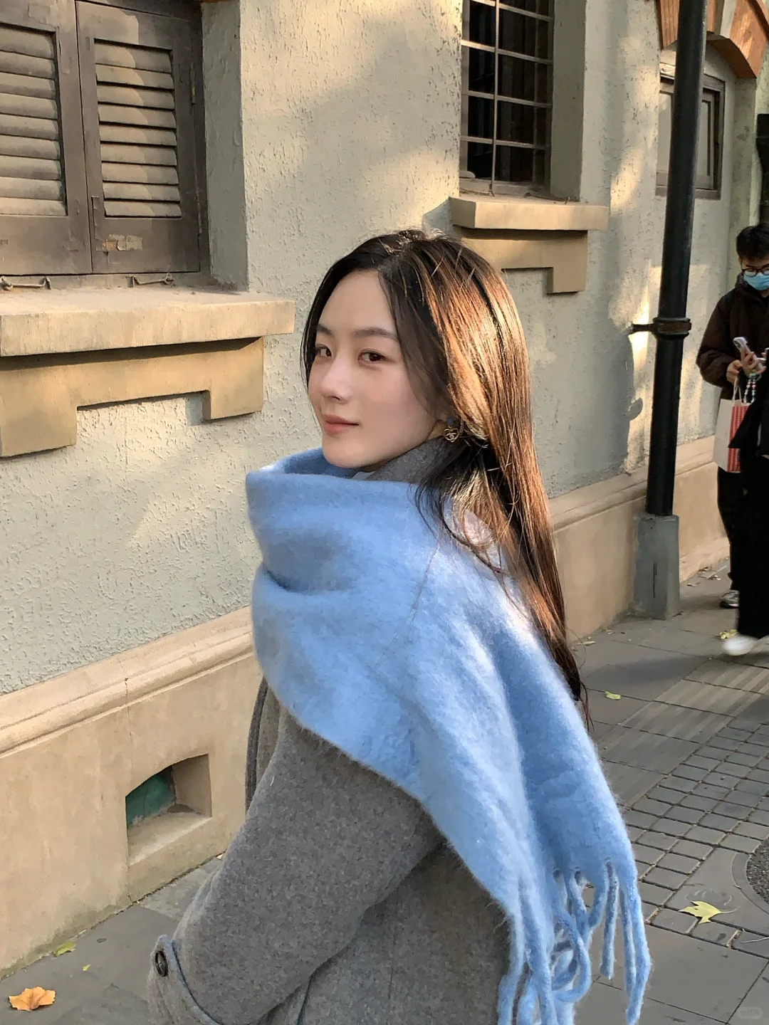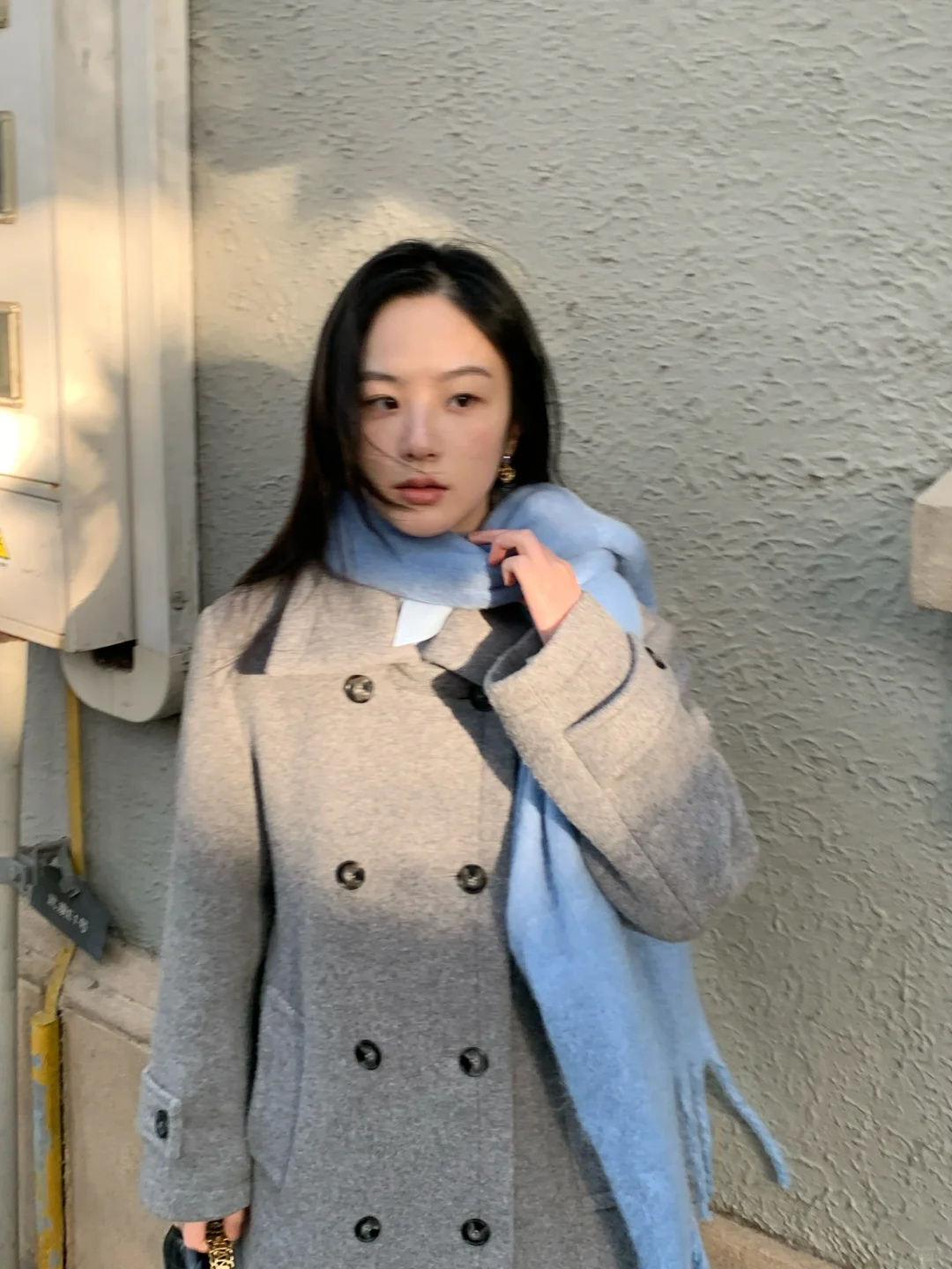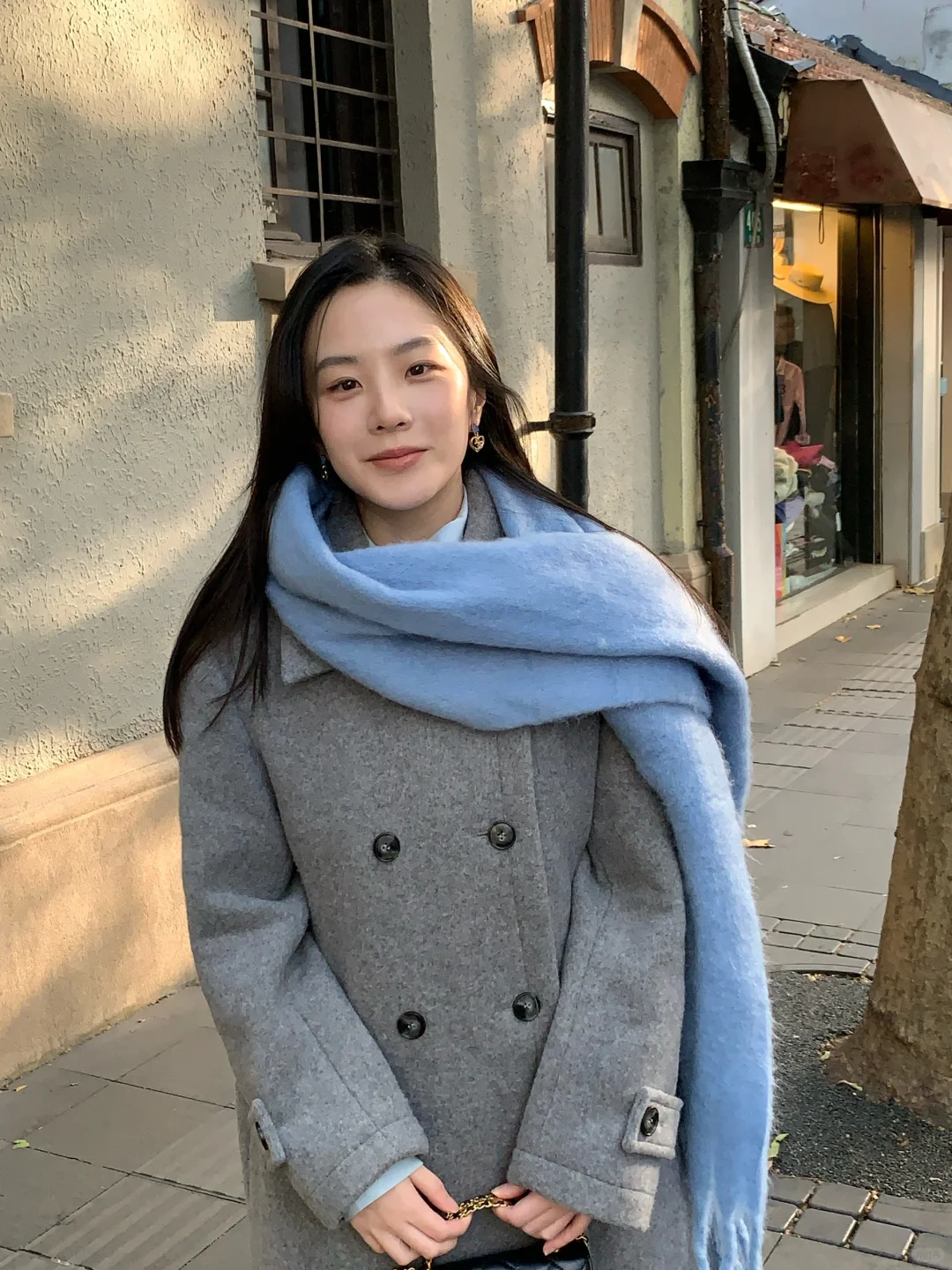暖暖的冬天,灰色跟蓝色的搭配最亮眼啦,我想,我能理解为什么老师会推巴恩风穿搭了,老师,thank u[飞吻R]