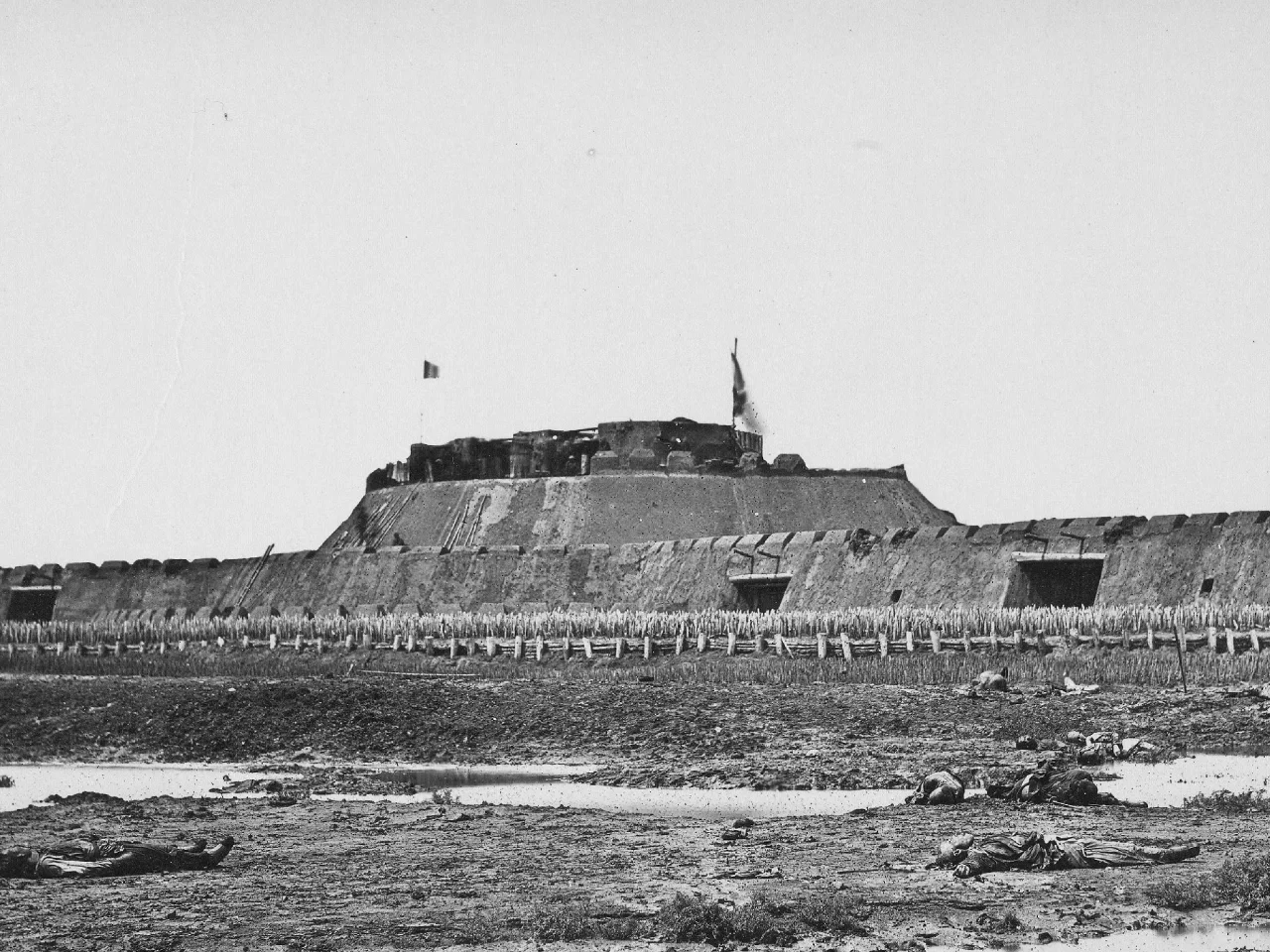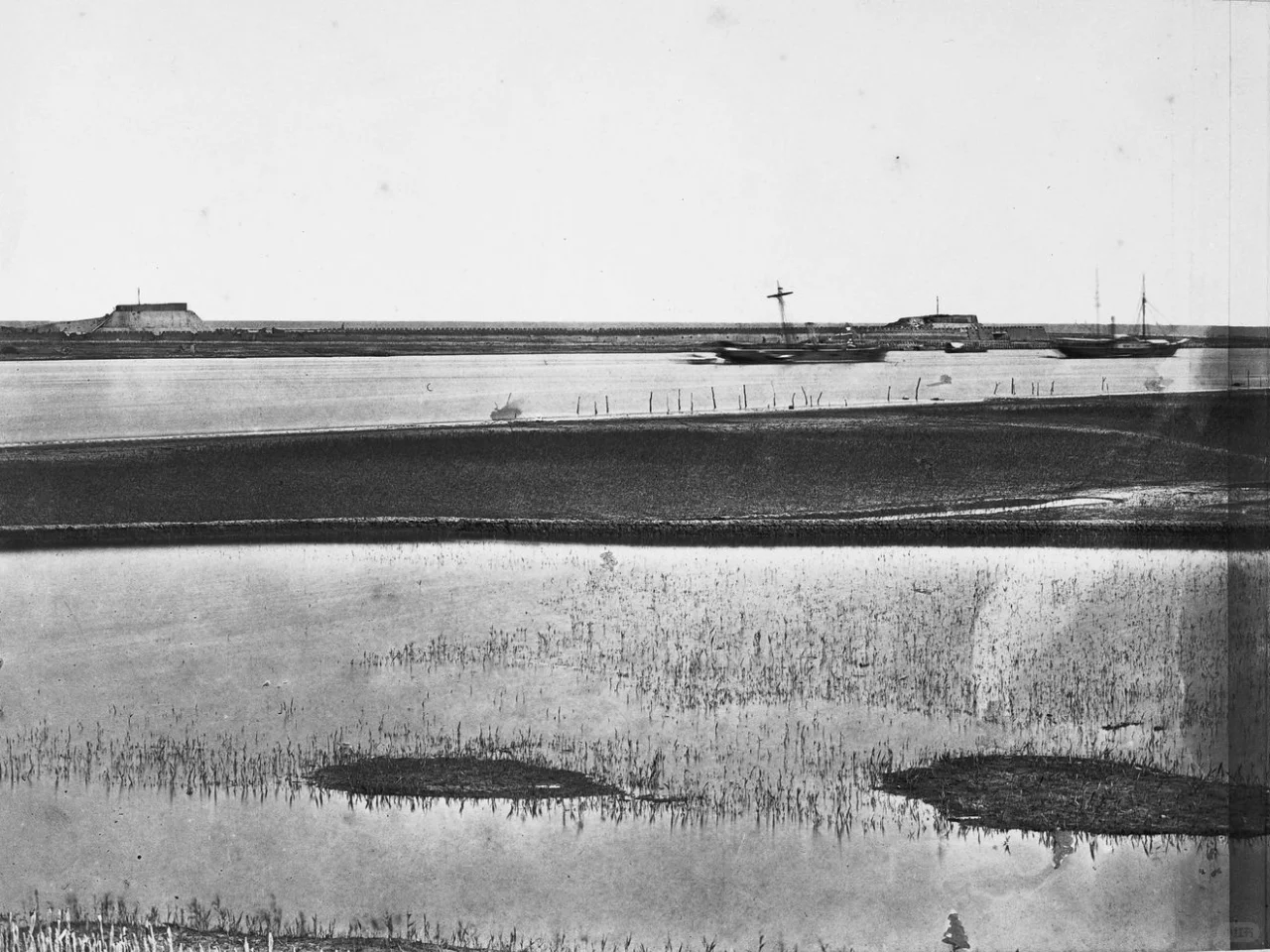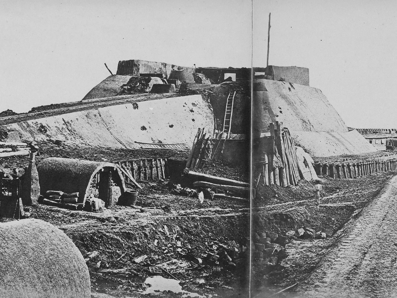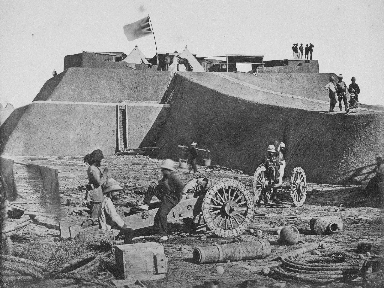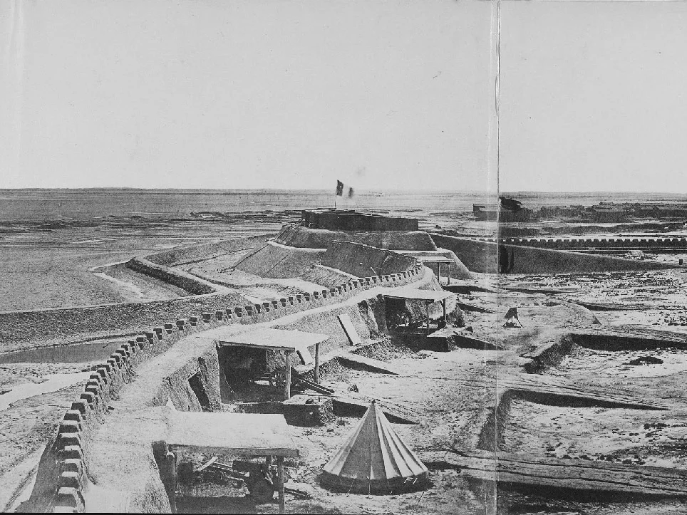 [私信R]图为1860年联军攻陷大沽口炮台后由早期战地摄影记者费利斯·比托拍摄的照片,其中可以看到联军的军舰和架设的梯子、炮台的外壕沟和木刺、落后的火炮、甚至有些照片里还可以看到清军使用的弓弩。他后随英法联军在中国境内拍摄了大量珍贵的影像。