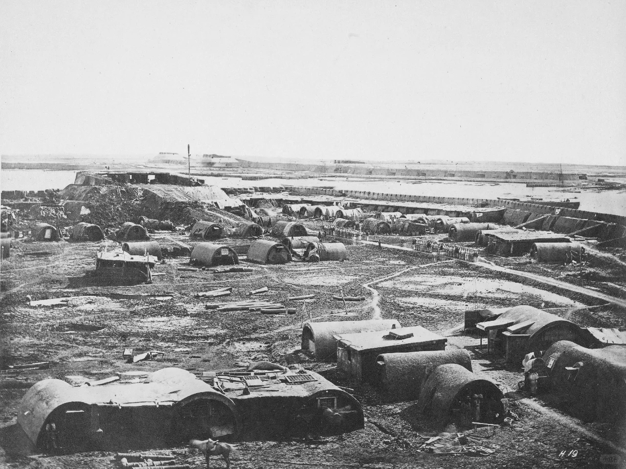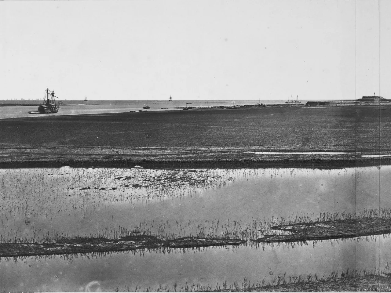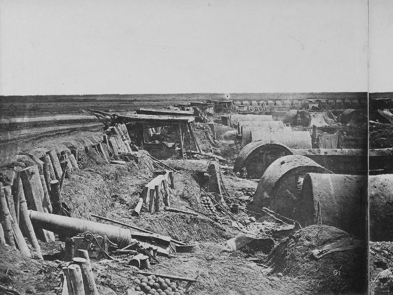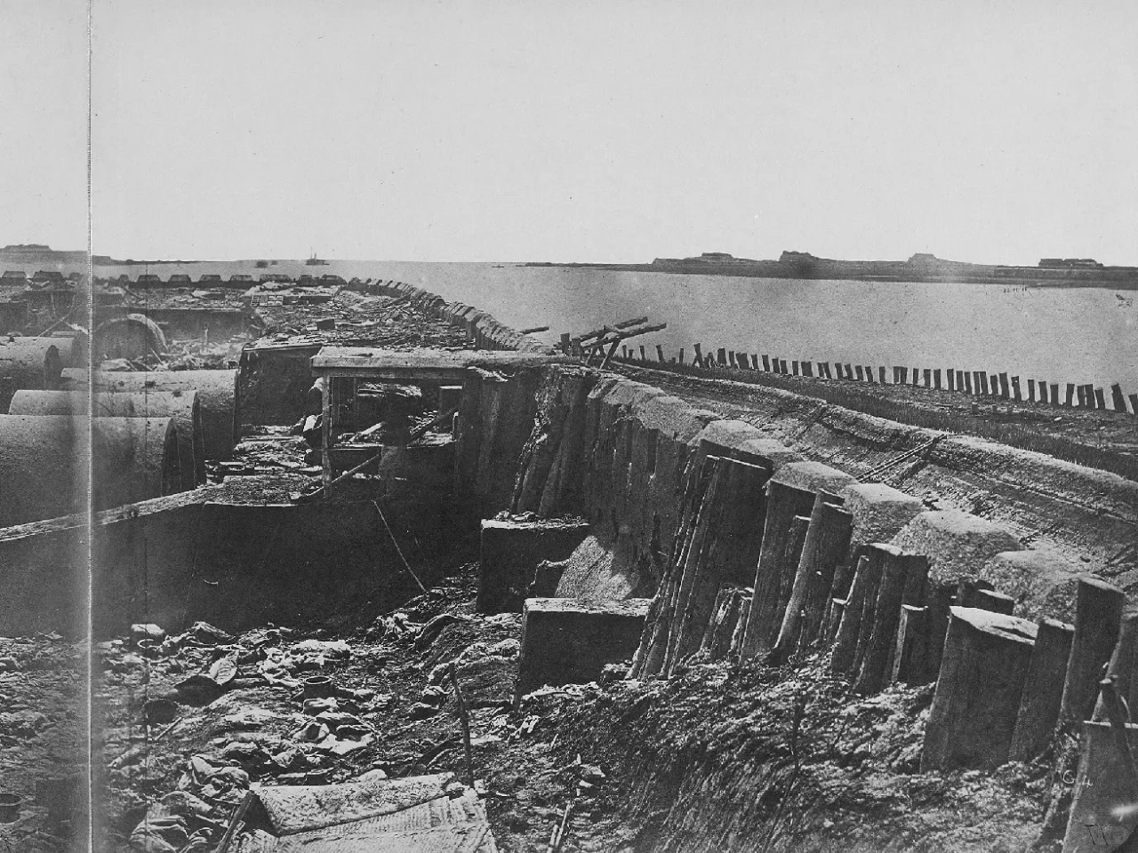 [私信R]图为1860年联军攻陷大沽口炮台后由早期战地摄影记者费利斯·比托拍摄的照片,其中可以看到联军的军舰和架设的梯子、炮台的外壕沟和木刺、落后的火炮、甚至有些照片里还可以看到清军使用的弓弩。他后随英法联军在中国境内拍摄了大量珍贵的影像。