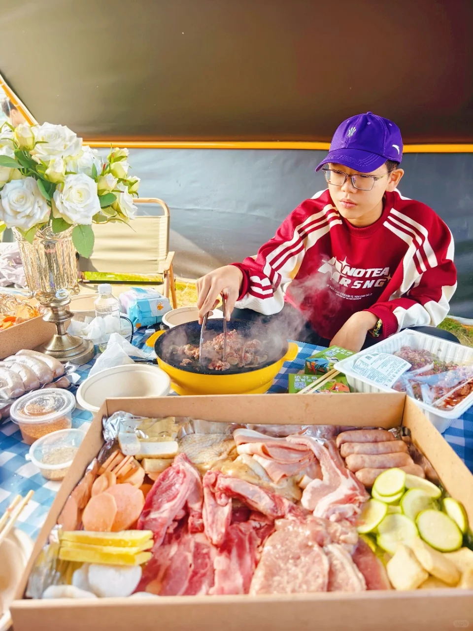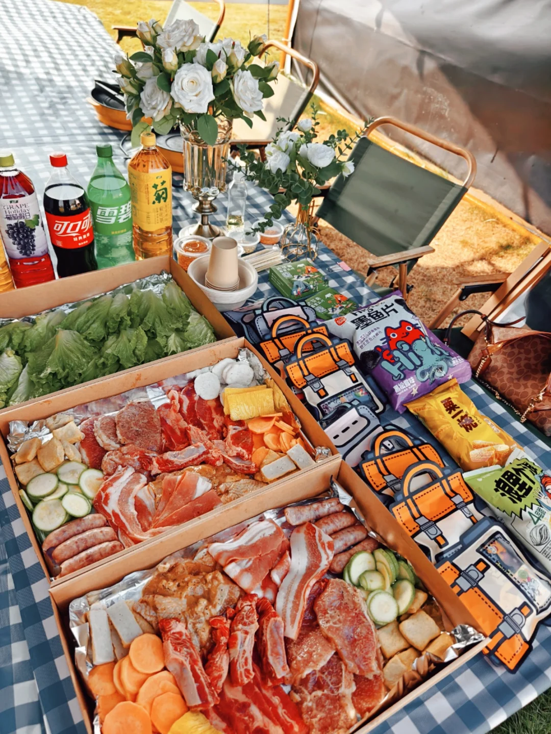 🛏️⛺️营地🉑提供舒适的帐篷和桌椅,还有各种肉类、蔬菜、饮品、零食,让我们轻松享受美食时光!🍲🥩