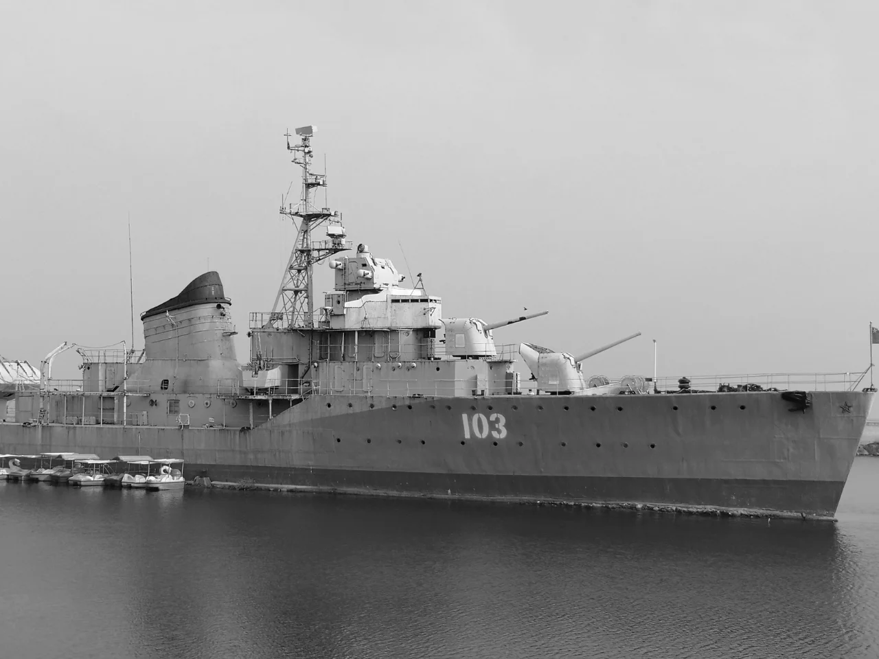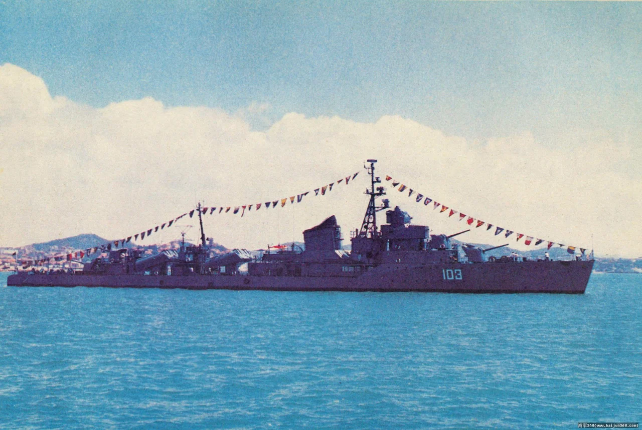 07型雷击驱逐舰103长春舰,原苏联海军“坚决号”驱逐舰。1941年于共青城造船厂完工,1955年购入并在北海舰队服役。70年代进行过现代化改装,将鱼雷发射管拆除后换装双联反舰导弹,变身为导弹驱逐舰,1990年退役。