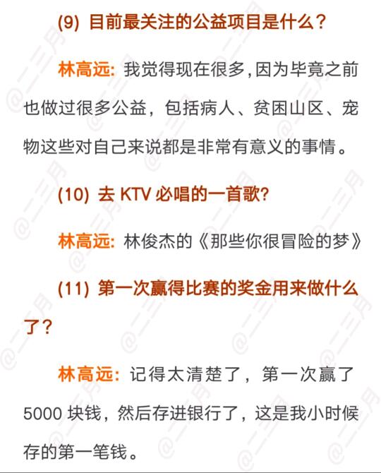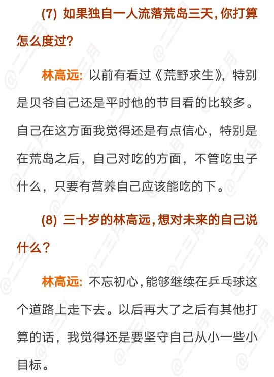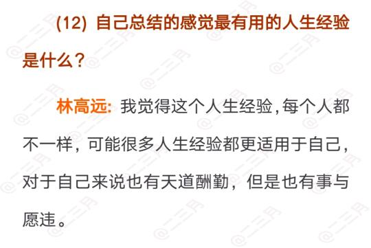 林高远的杂志快问快答,每一个问题都很认真的回答,一点都不敷衍。