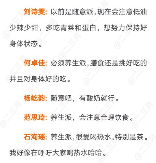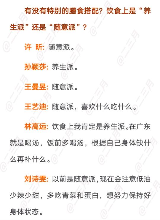 ④ 有没有特别的膳食搭配? 饮食上是“养生派”还是“随意派”?
