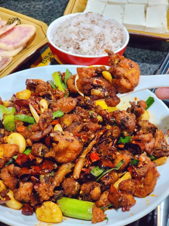 主食红米饭也是亮点,粗粮糙米,绿色健康,不吃都不行!🍚