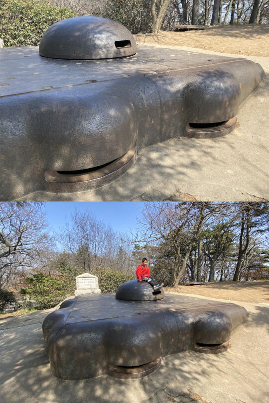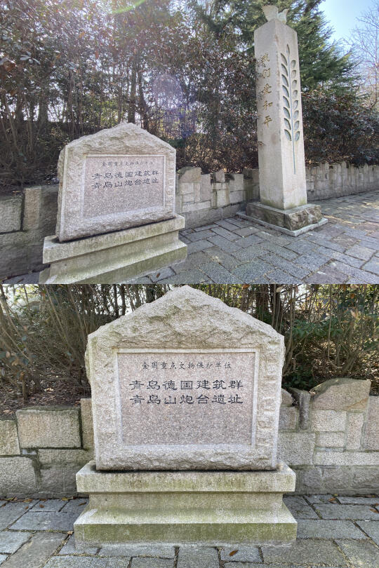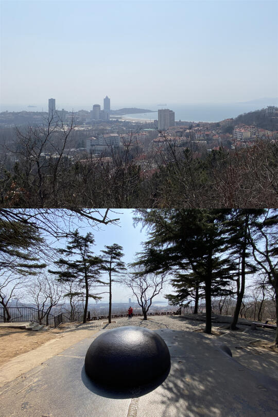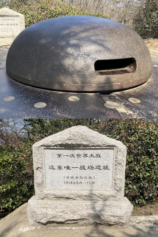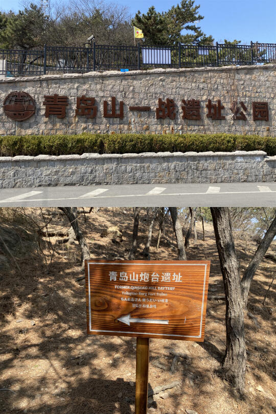 15年秋,游青岛。迷迷糊糊溜进海洋大学,看了“俾斯麦军营”的几座营房楼,又误打误撞行至青岛山公园。天晚荒芜正欲返回,突然想起纪录片《青岛要塞》里有介绍过青岛山(俾斯麦山)上有个著名的装甲瞭望塔。“何不爬上去看看?”…在山顶转了很久也没找到,问一老翁才知公园正在整修,堡垒等都已被围挡遮住。24年春,游青岛。又特意去一看,是日天气晴朗,海雾未收。这次是从青岛一战博物馆方向上山,很快就找到那个惦记了快十年的瞭望塔。不巧的是炮台地下掩蔽部又在整修暂不开放。此堡垒顶部的旋转瞭望塔自重6吨连同地下框架总重160吨,转塔下由44枚直径50mm的钢珠支撑可360度旋转,以观察胶州湾内船只和四周情况,观察塔在德国整体铸造后运抵青岛组装。南炮台配备4门208毫米口径L12型榴弹炮,位于固定式地穴炮座内,上配装甲圆顶盖。(战后炮位被日军填平)炮身可360度射击,射程10.5千米。浮山湾、太平湾、汇泉湾、青岛湾、团岛湾、西侧胶州湾南部海区都在其打击范围内。1914年11月守备德军在投降前将其摧毁。