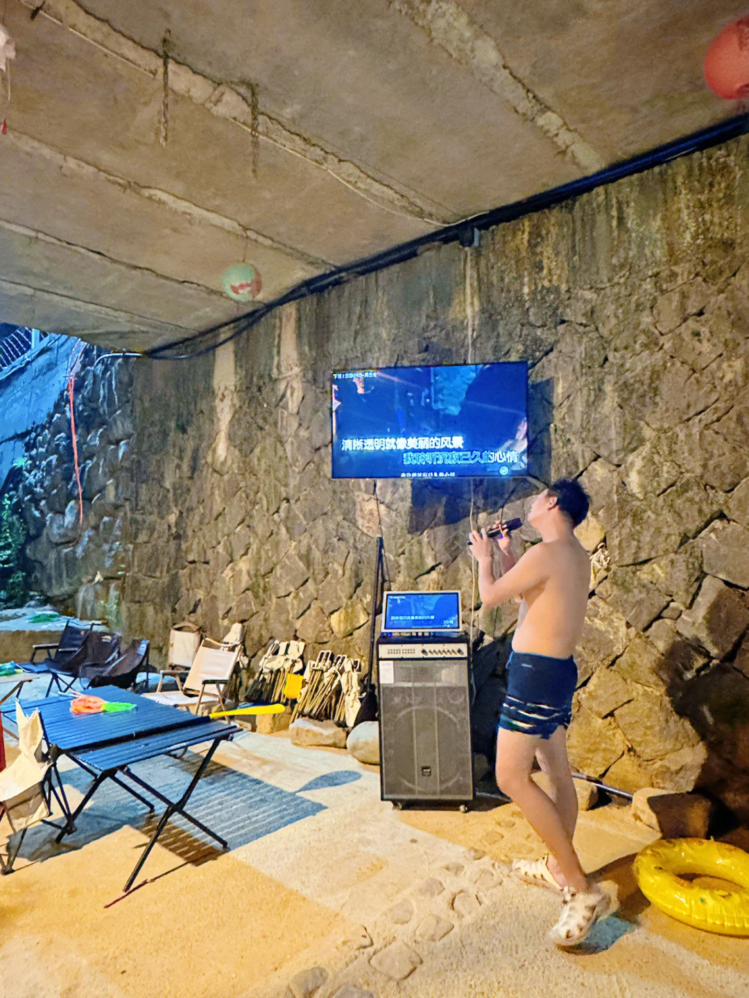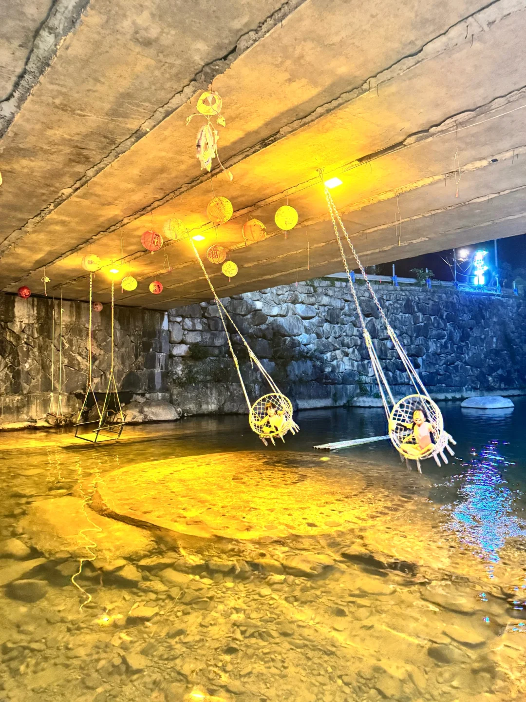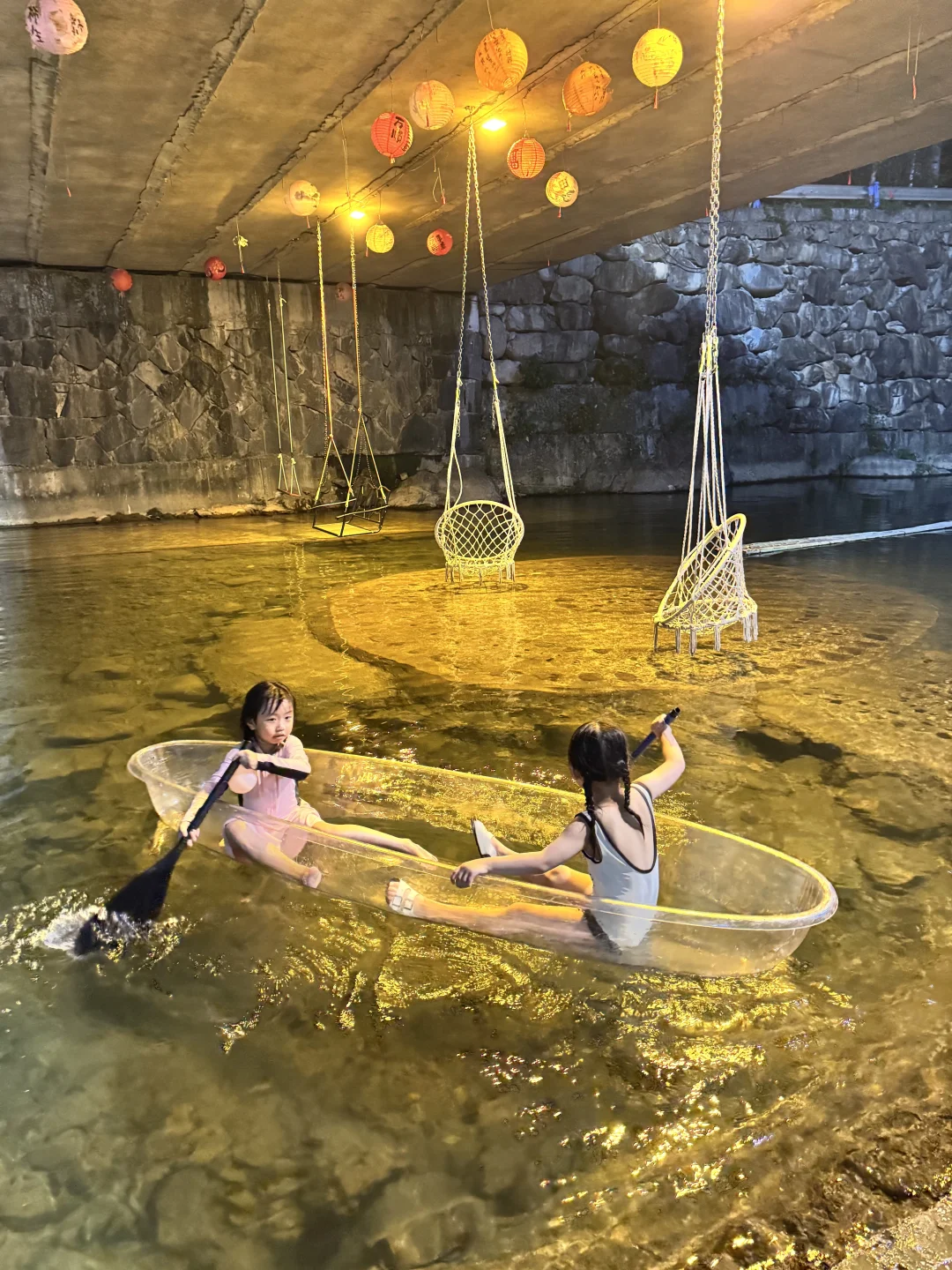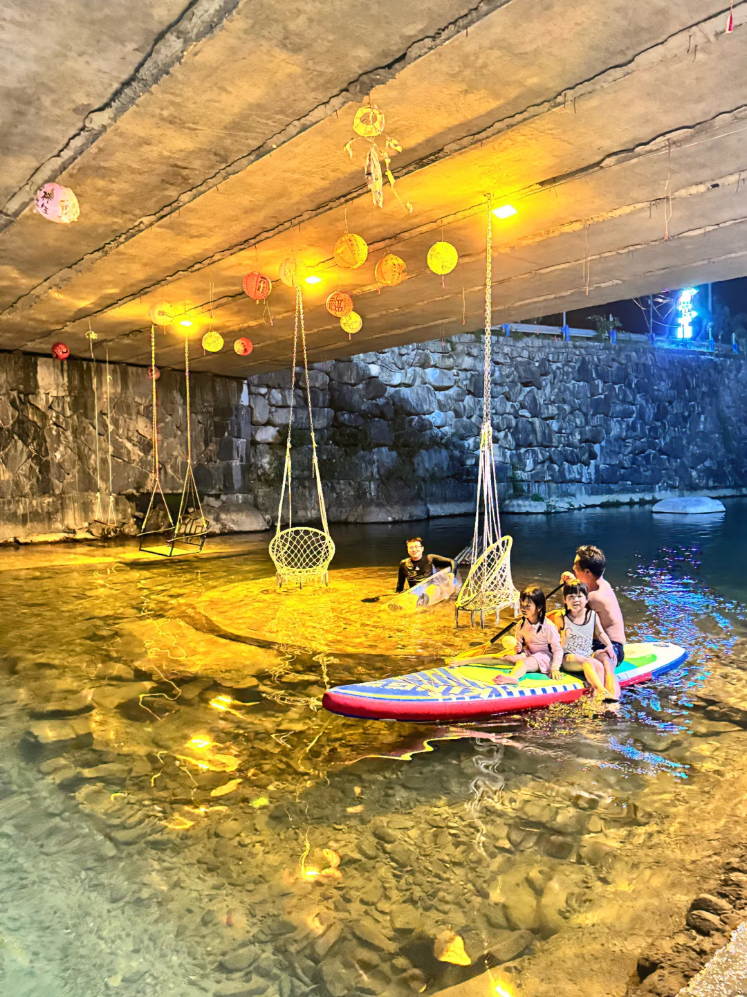 小朋友在溪边玩水,大人在伞下吃吃喝喝,还可以唱K,氛围超👍,这才是暑假的正确打开方式‼️✨白天桥底下玩也不晒,晚上氛围感满满,拍照📷也绝了😁