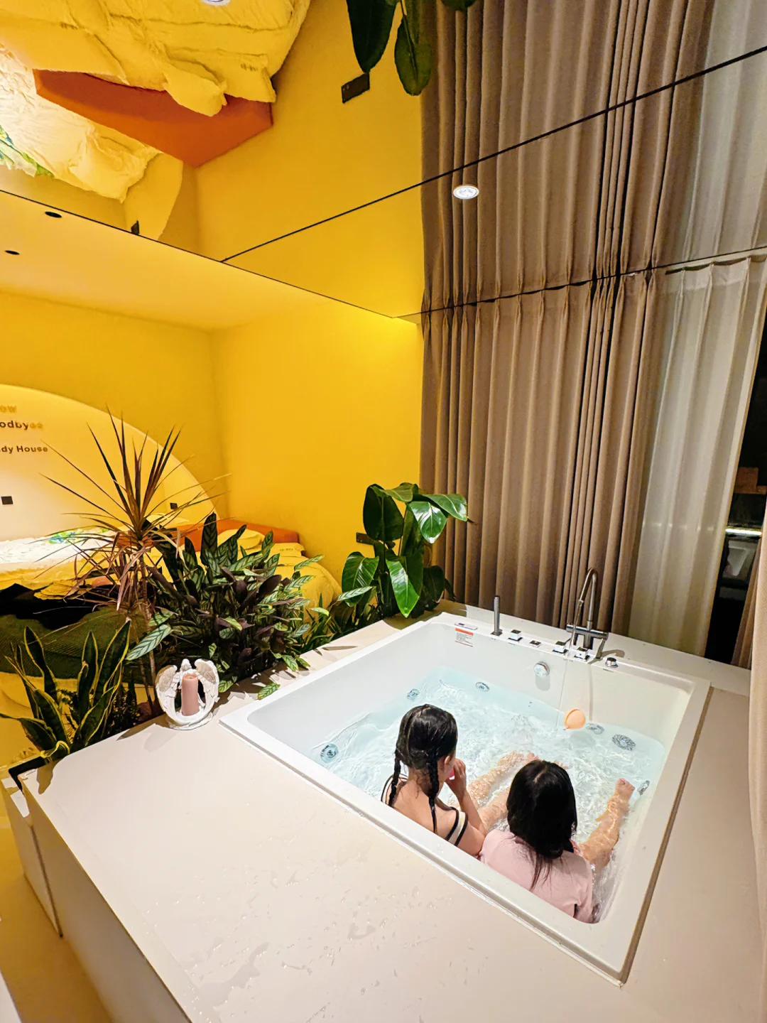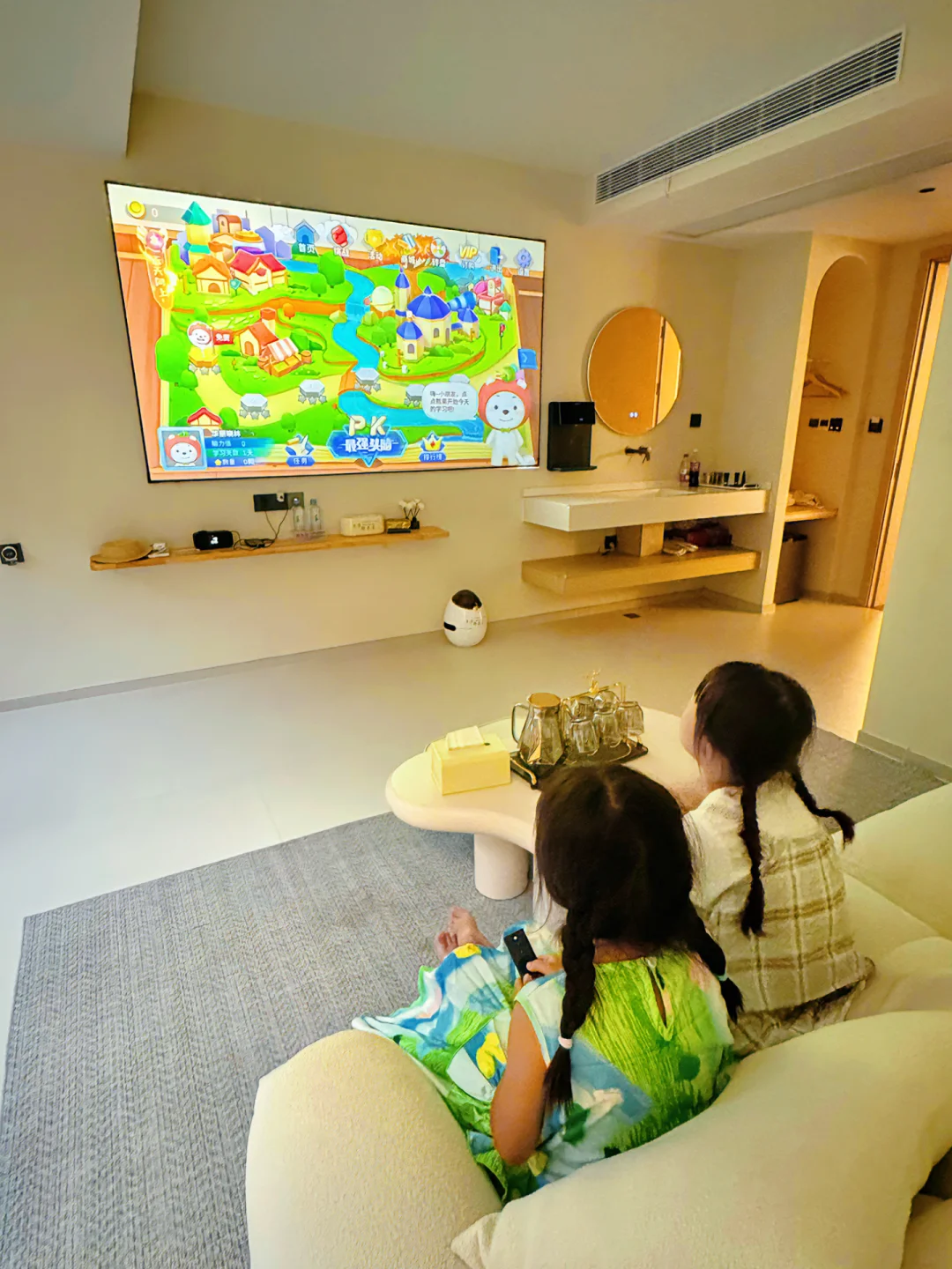 亲子房布置的也很温馨,有的🈶儿童滑梯、帐篷,有的🈶浴缸🛁,娃放电超easy!大人们可以组队去KTV、棋牌室,或者坐在露天吧台看星空,晚上再来场烧烤派对,氛围感直接拉爆!🌟✨