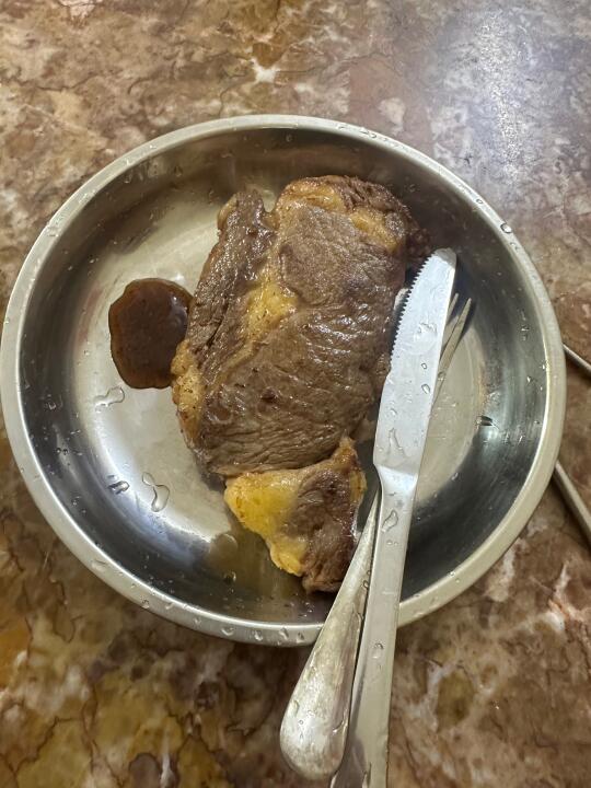🍚早餐:一块200g牛排+一杯蛋白粉