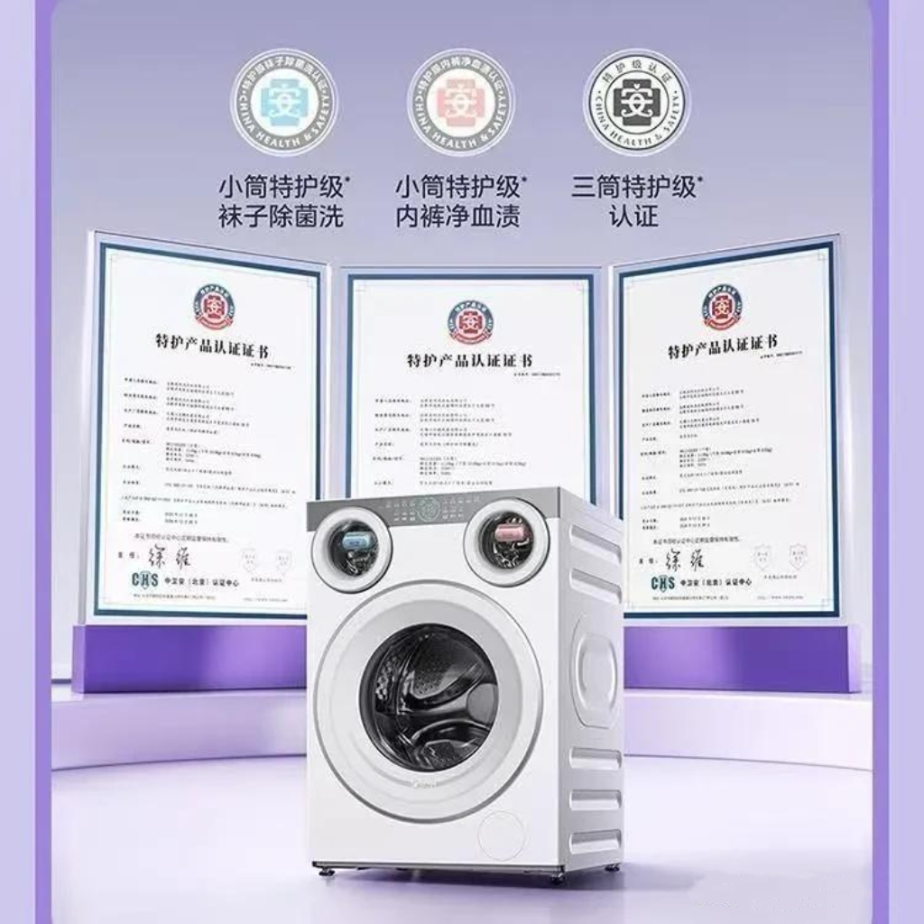 也正是盯着这些实打实的痛点,美的在2024年8月推出了可爱多三筒分区洗烘一体机。靠着实打实的技术突破,它拿下了家电磐石创新奖,还有高端家电红顶奖,算是把行业一直没解决的难题,真正落地了。