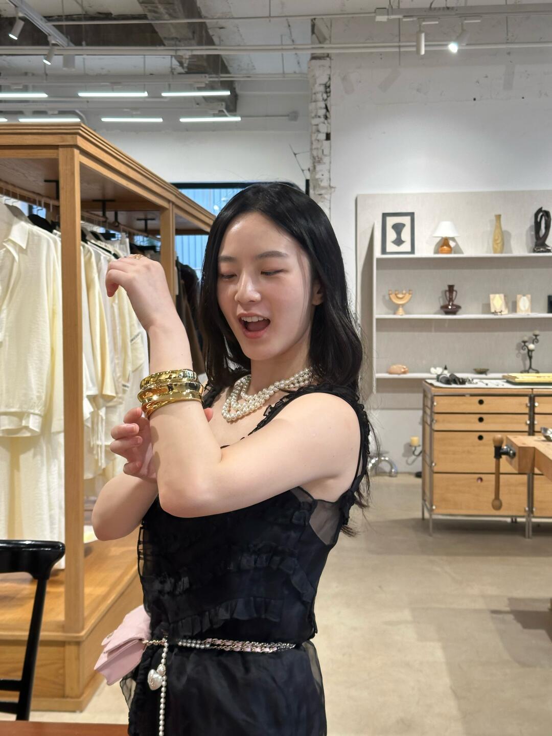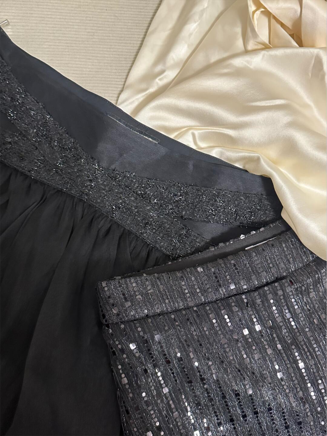 2、第二天在特卖会又收获一些亮片元素和真丝衣物,这条亮片五分裤感觉配一双凉鞋和腰包就十分Carrie了,我没有腰包还是用项链和小挎包改造的。。