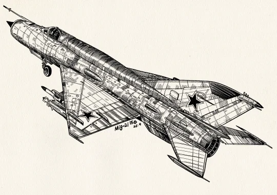 米格-21战斗机是苏联米高扬·格列维奇设计局于1950年代初期研制的一种单座单发轻型超音速第二代战斗机。北约代号为“鱼窝”(Fishbed)。苏联飞行员称它为“三角琴”、波兰人称它为“铅笔”。米格-21(包含仿制、改良型)是至今产量最多的超音速飞机,越南战争是它最广为人知的战场,曾与美国的F-4战机一较高下;在中东地区跟以色列也是频频交手,其他如南北也门战争、印巴战争也看得到米格-21的踪影。至今仍然有不少米格-21活跃在世界上,并有许多现代化升级套装,它被戏称是战机界的AK-47。不含其他国家的授权生产机,光是前苏联制造的各型米格-21合计生产总数就达到一万架以上。以超音速战机而言其产量堪称独一无二,亦是二次大战后世界上最畅销、影响力最大的战斗机之一。