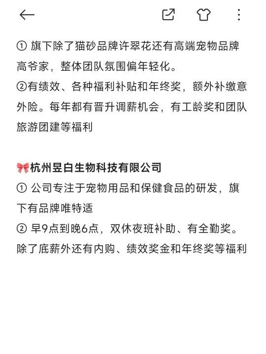 ② 早9晚5点半,双休加班补助,还有额外的年假福利和养宠福利等