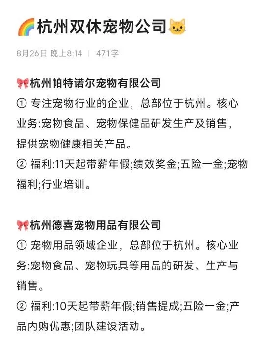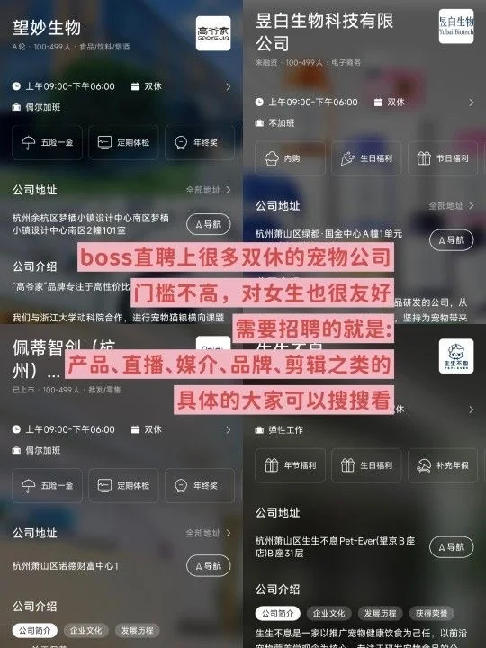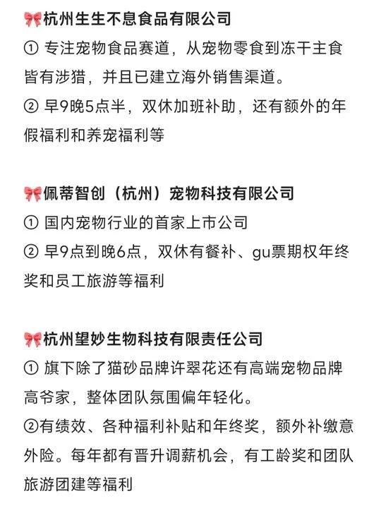 杭州6个神仙宠物公司分享,具体岗位可以在BOSS直聘上查看!!上面的岗位很多,BOSS回复也都是很快的,找工作效率是平台里面我感觉最高的!