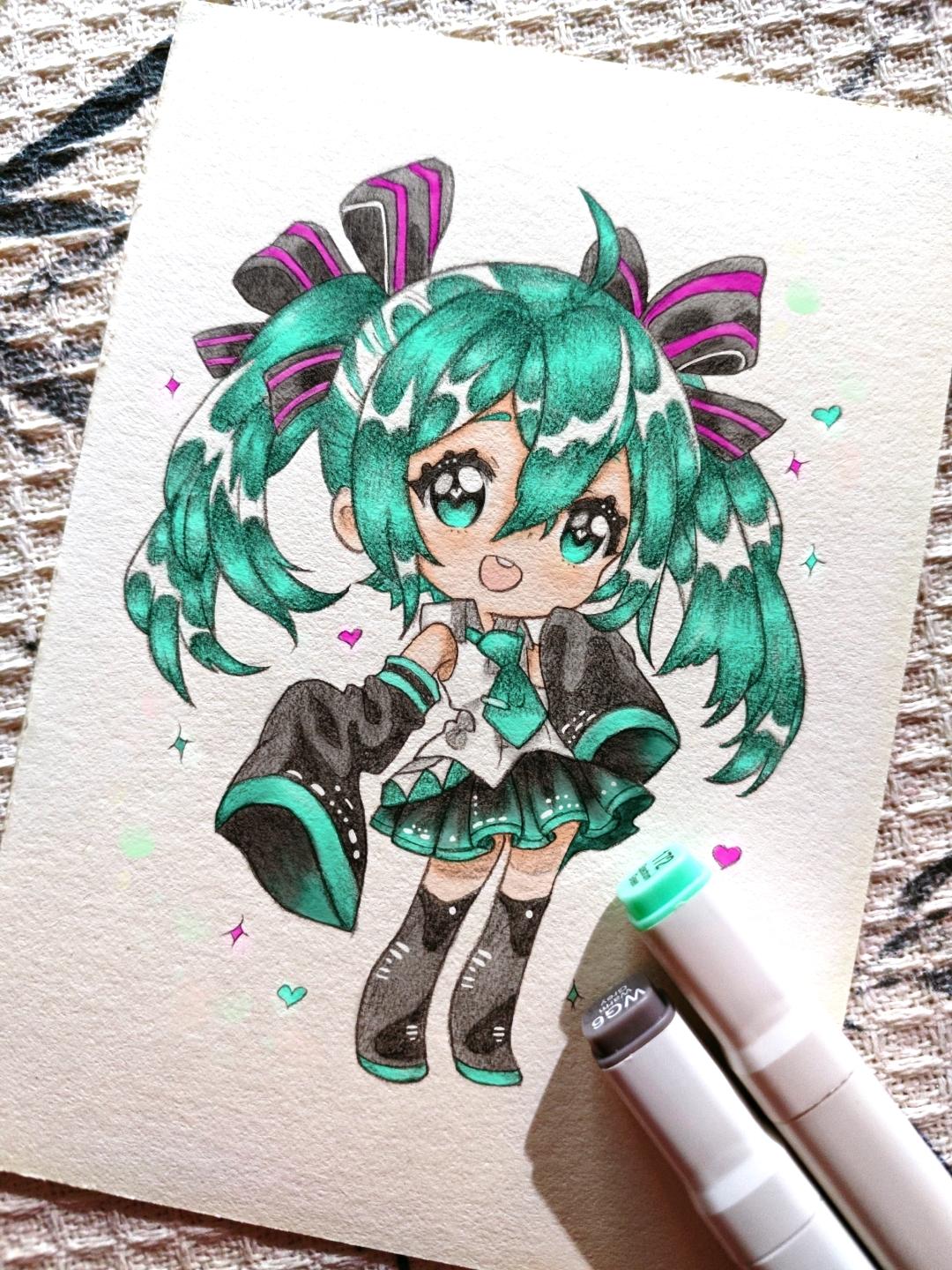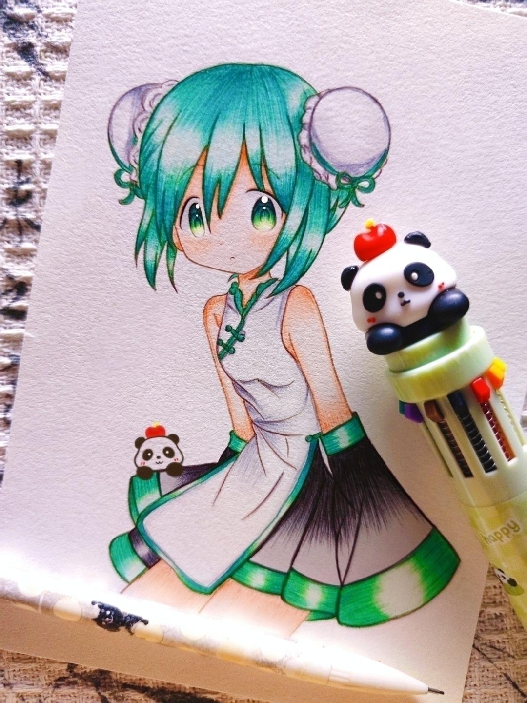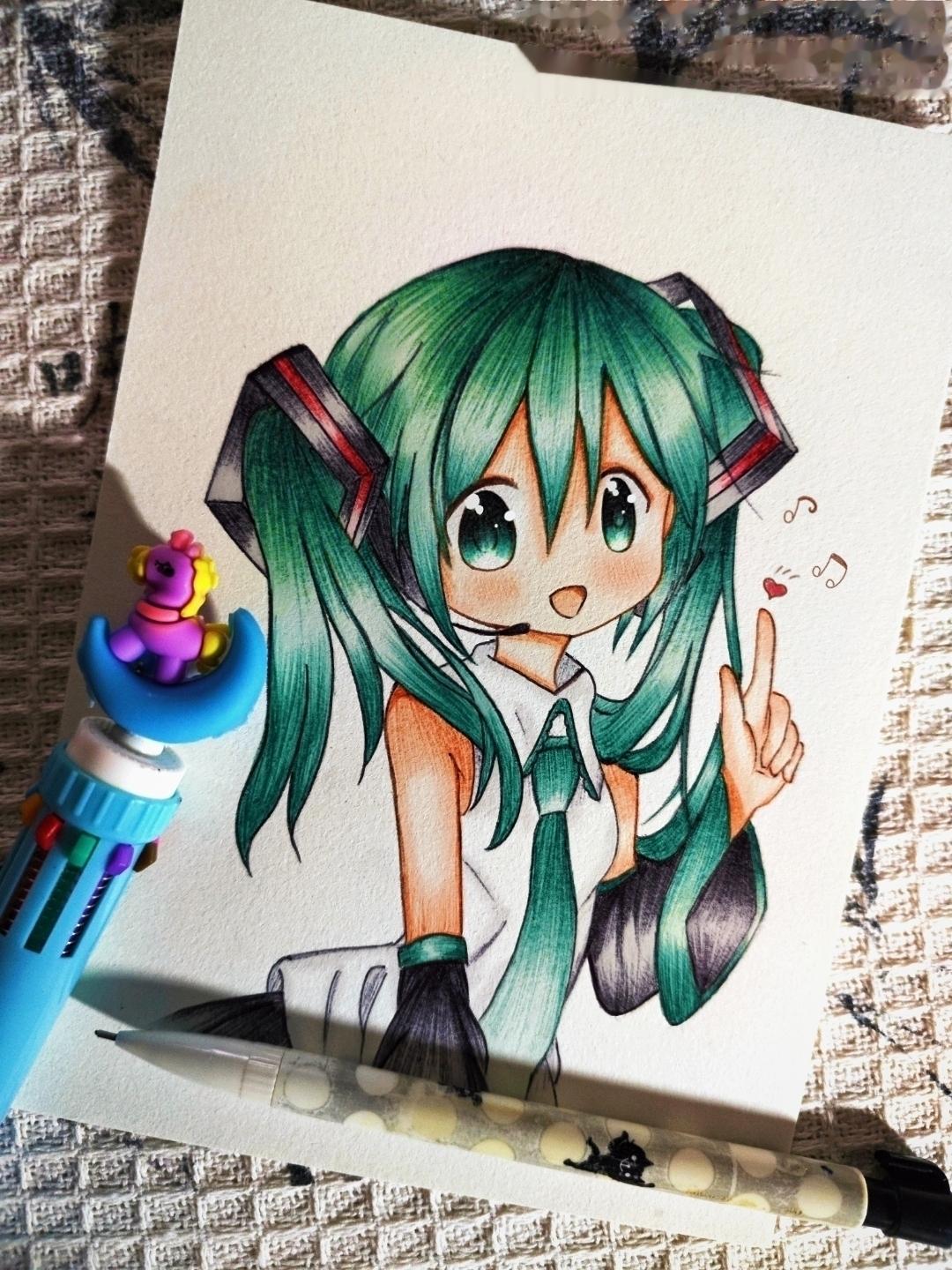 初音未来手绘九宫格,圆珠笔绘制超萌美图。