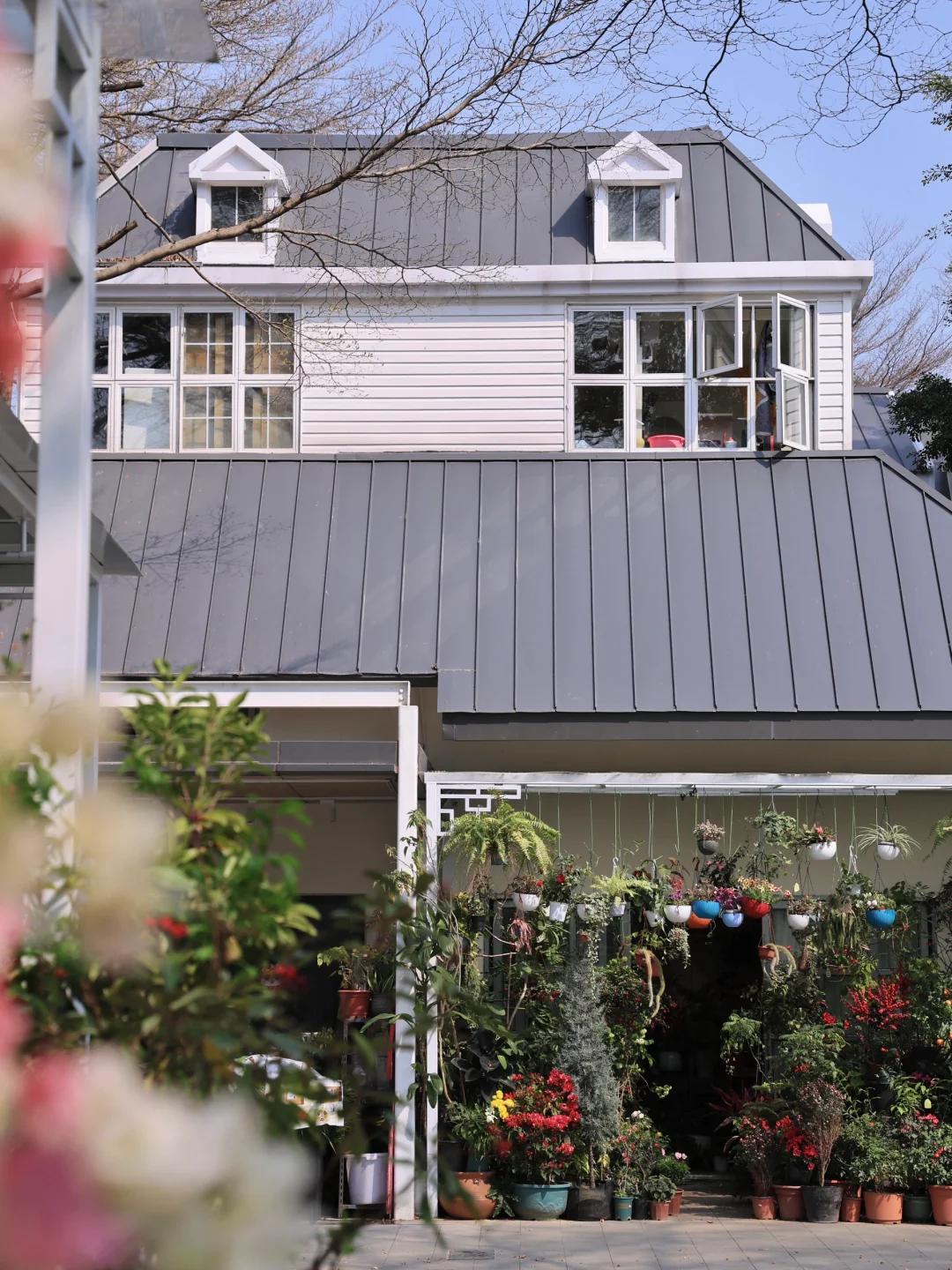 里面不仅有便宜的花卉售卖,还有鸟类、猫狗、仓鼠、金鱼等各种类宠物交易,旁边是个小公园,大风车和草坪是亮点,野餐和拍照都非常适合,累了还可以随意找一家店坐下喝下午茶,空气里都充满chill的味道~