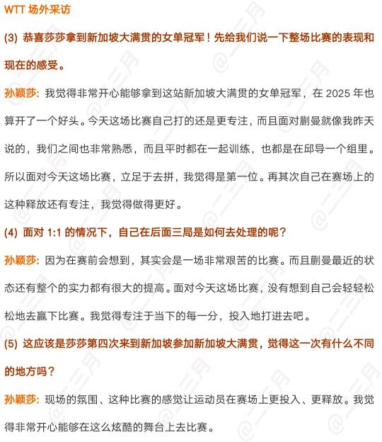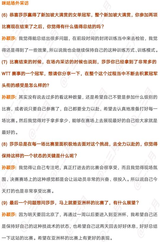 新加坡大满贯女单决赛夺冠采访,恭喜莎莎女单夺冠!