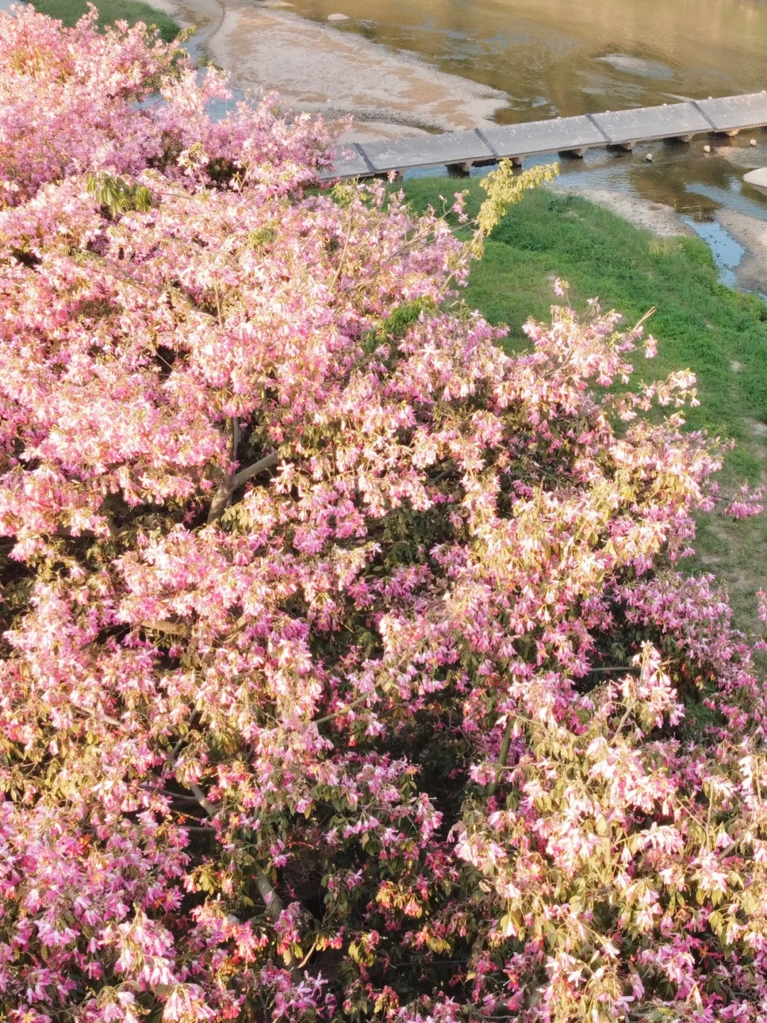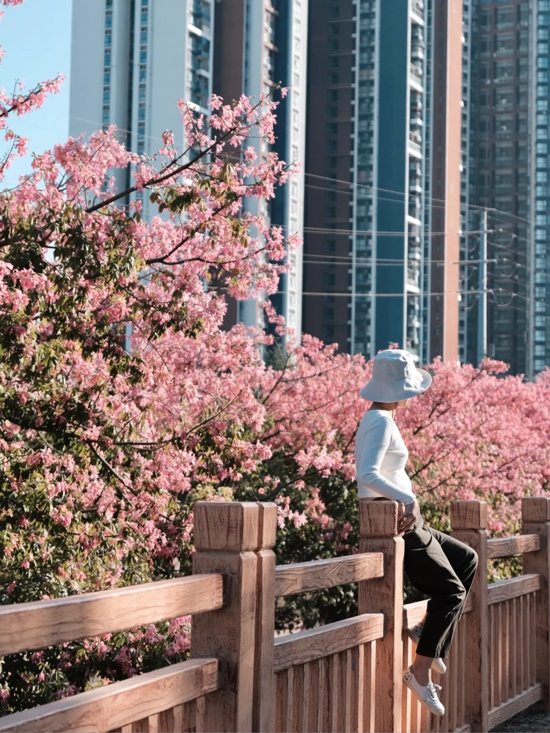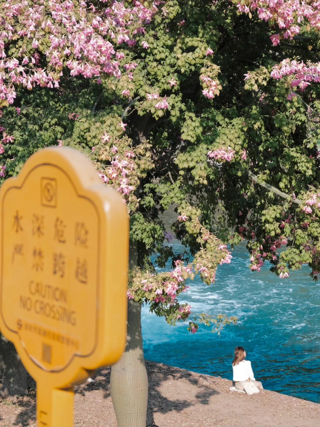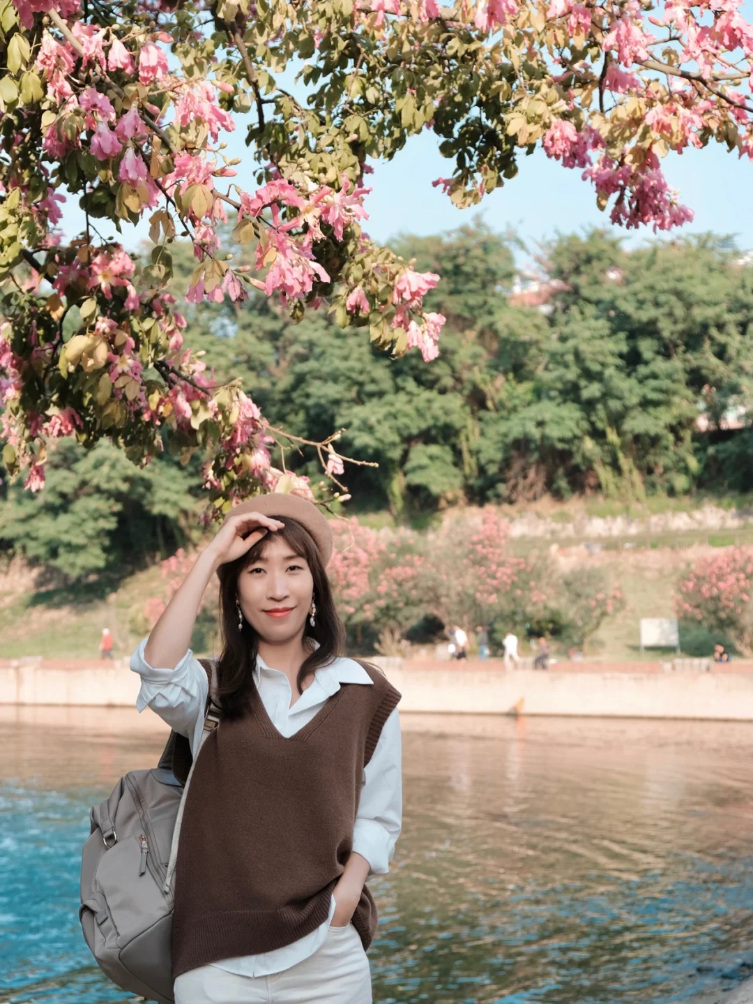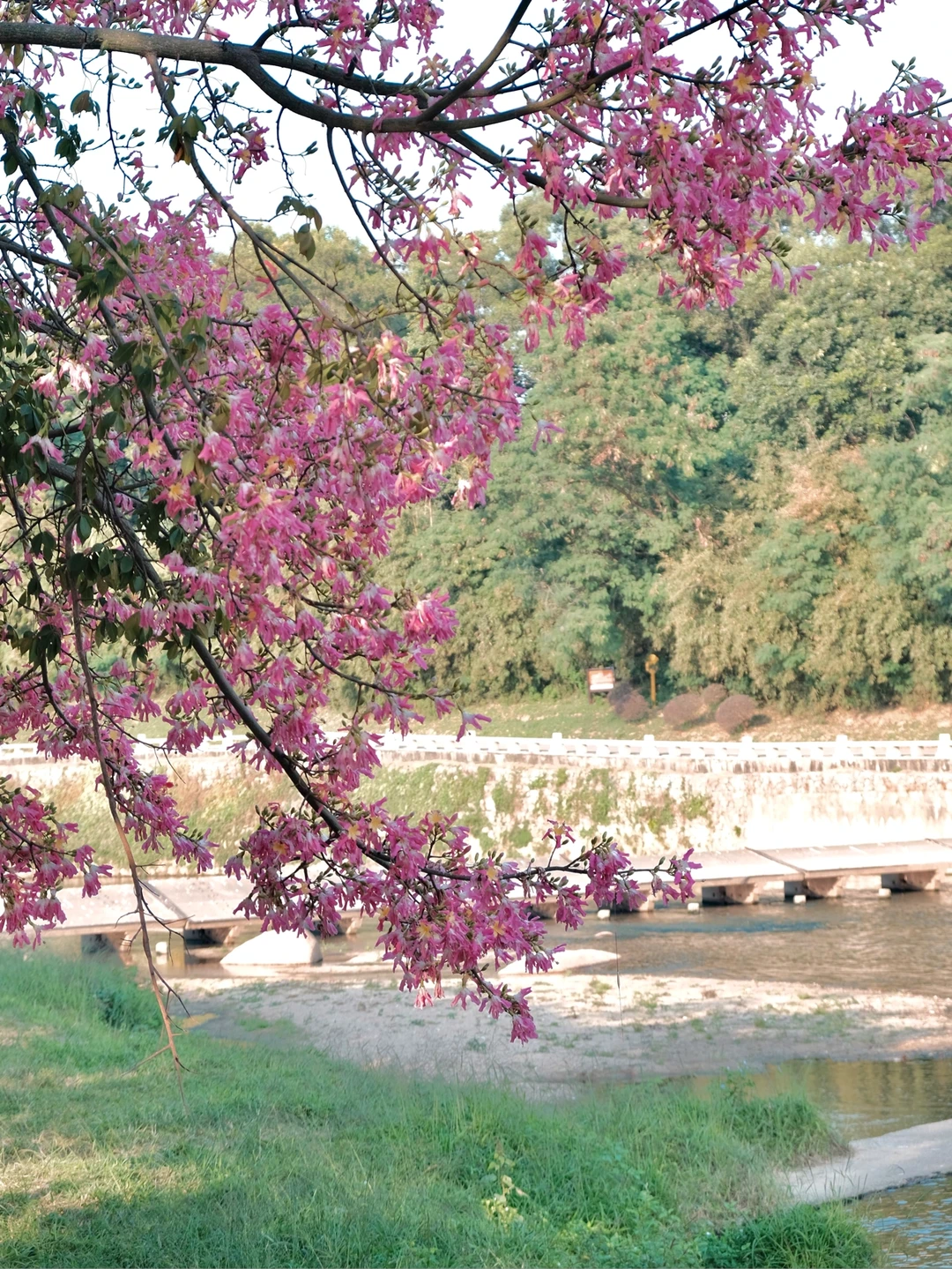 🌸这次没有去永顺路段,而是到了另一个地方踩点,因为正好有个拍起来比较日系的围栏,还有河边的流水衬托,所以是完全是不同风格的景象。
