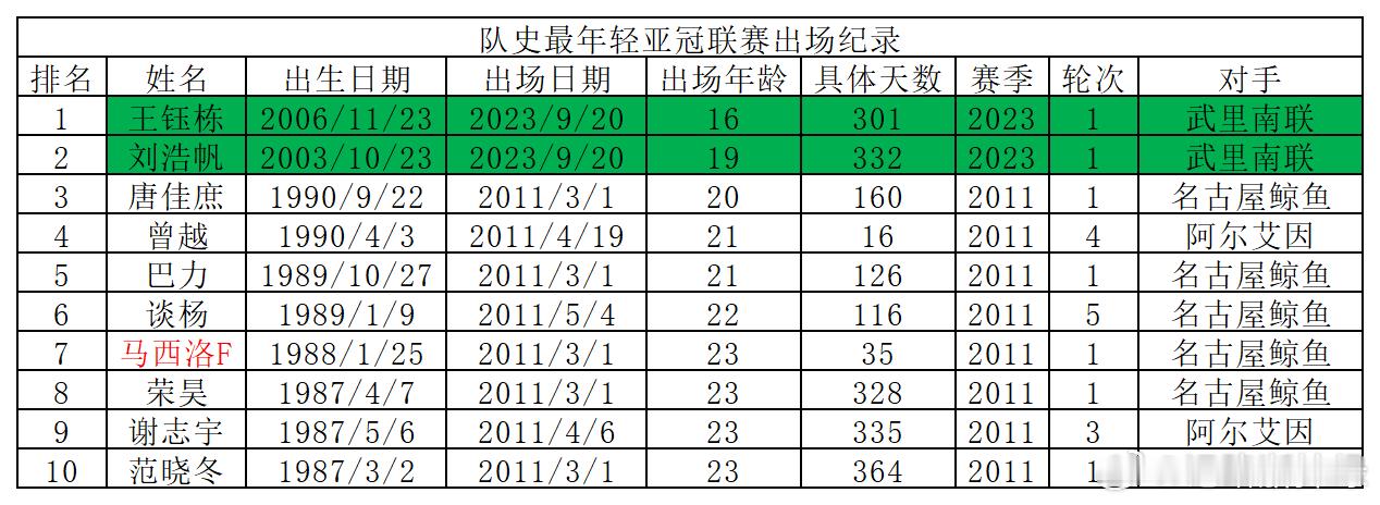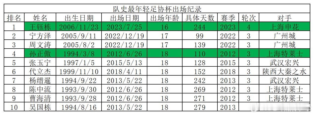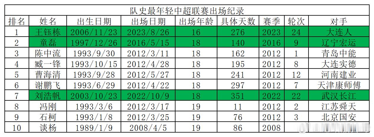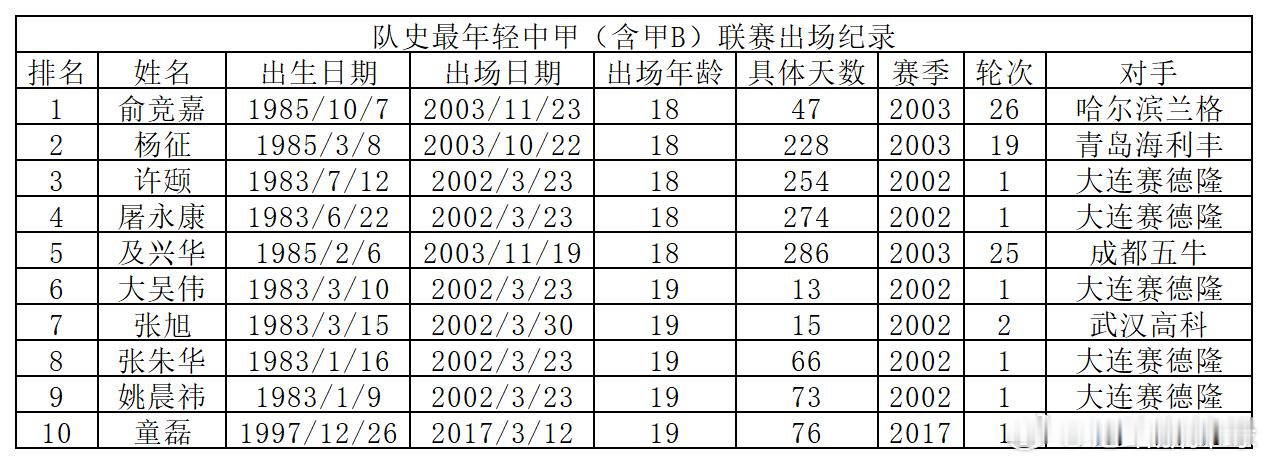 浙江队队史最年轻出场纪录(及四项主要赛事最年轻出场纪录)发布如下,请各位审阅,如