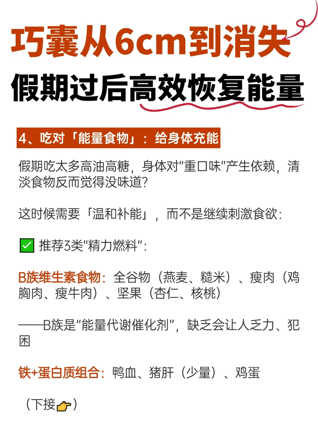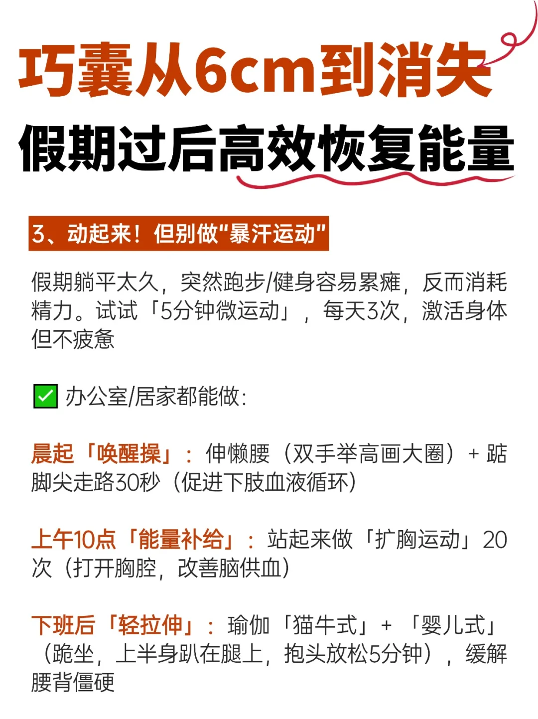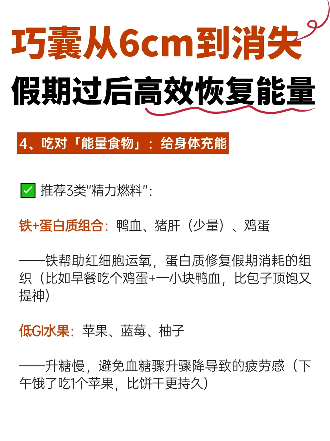 假期就像给身体“充了电”,但充电太满反而需要“缓冲期”放电调整。不用苛责自己“没立刻恢复”,用对方法,3天就能找回轻盈状态~