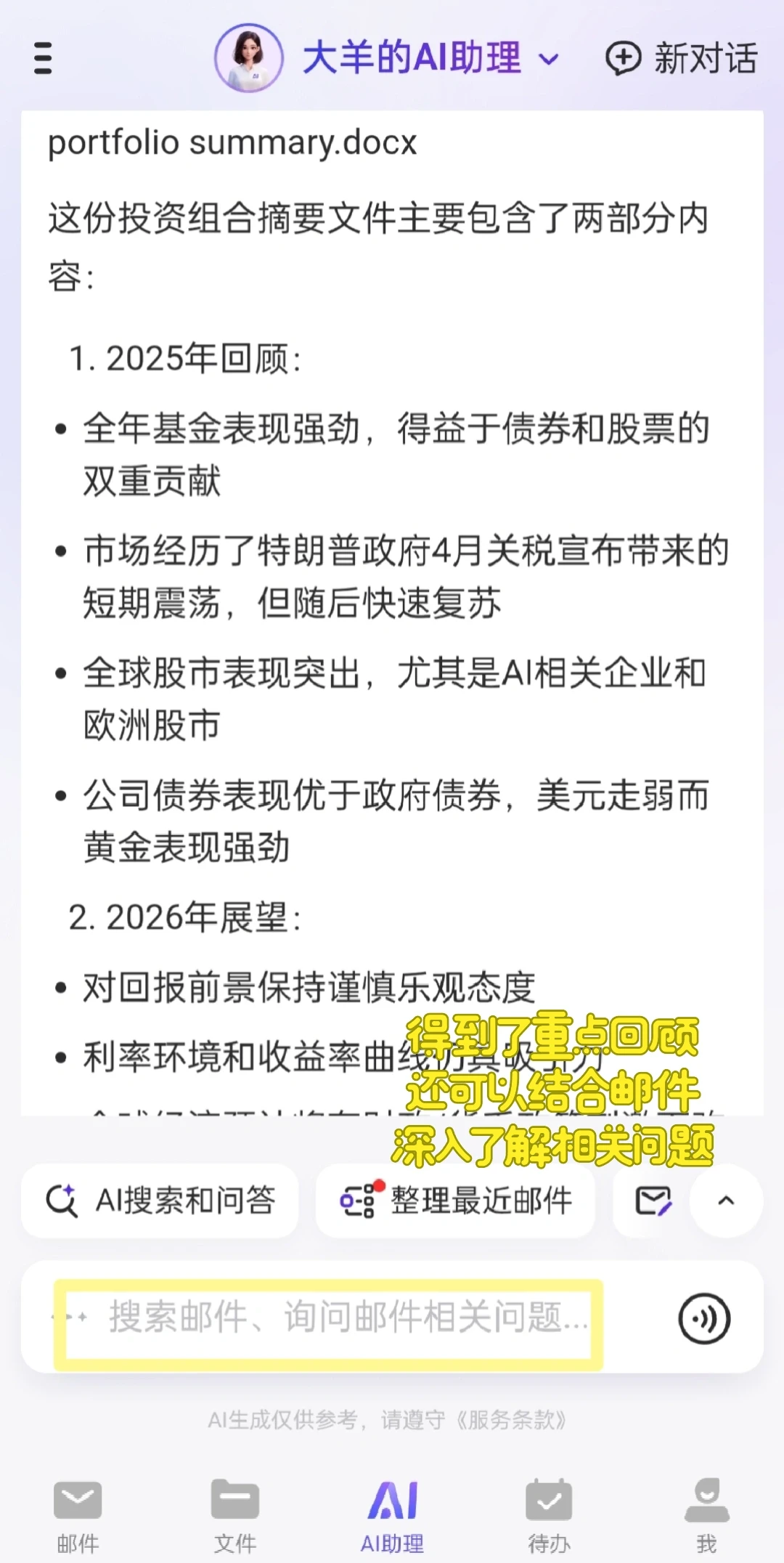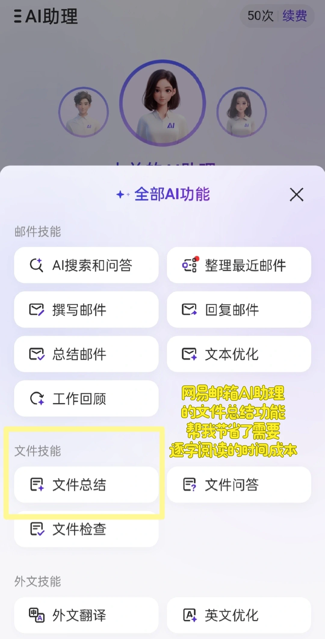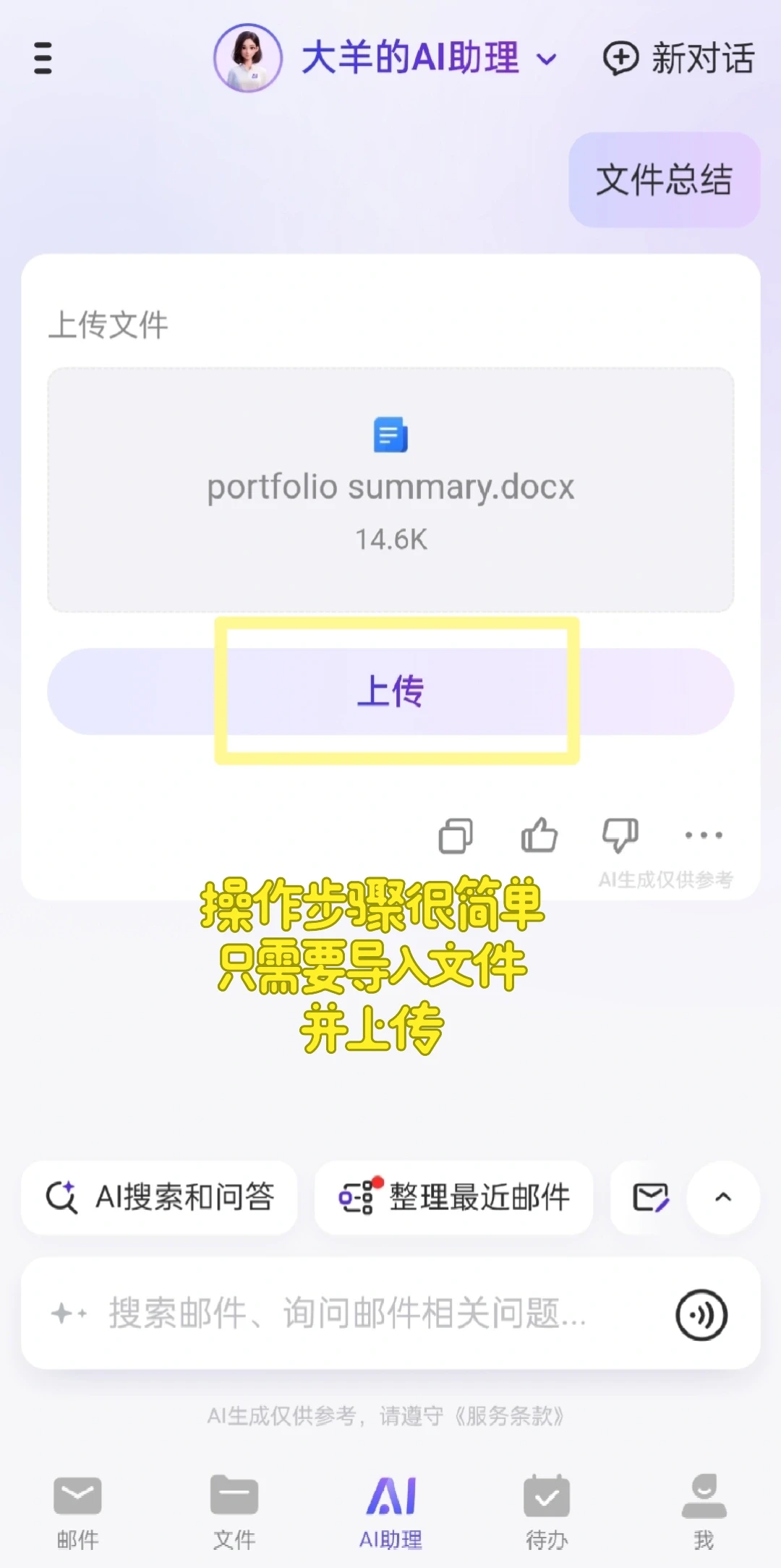观察职场中的靠谱打工人,发现他们都具备能够抓住重点的能力。阅读长篇文件,想要节省时间,可以用网易邮箱AI助理的文件总结功能,只需要将文件上传,就可以在繁琐的信息中提炼出文章的要点,省去了需要逐字阅读的时间成本,很适合需要翻阅处理大量文档的任务!